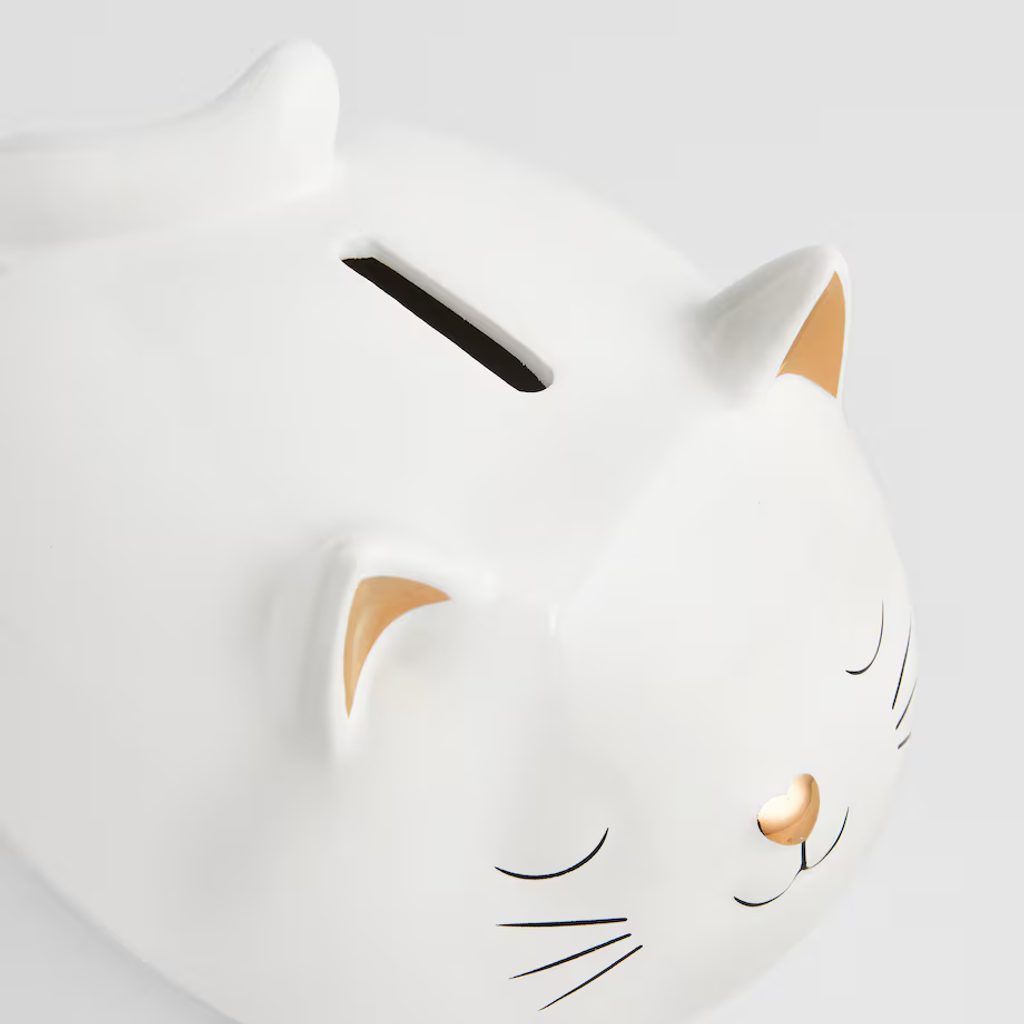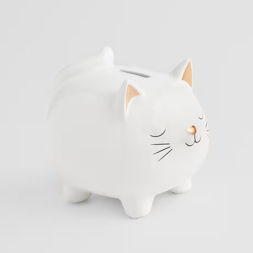 Ez a cicás persely tökéletes választás, ha szeretnél egy apró, mégis karakteres kiegészítőt a polcra, komódra vagy akár a gyerekszobába. A tetején található nyíláson keresztül könnyedén gyűjtheted benne az aprót, így nemcsak dekoráció, hanem hasznos társ is a mindennapokban.