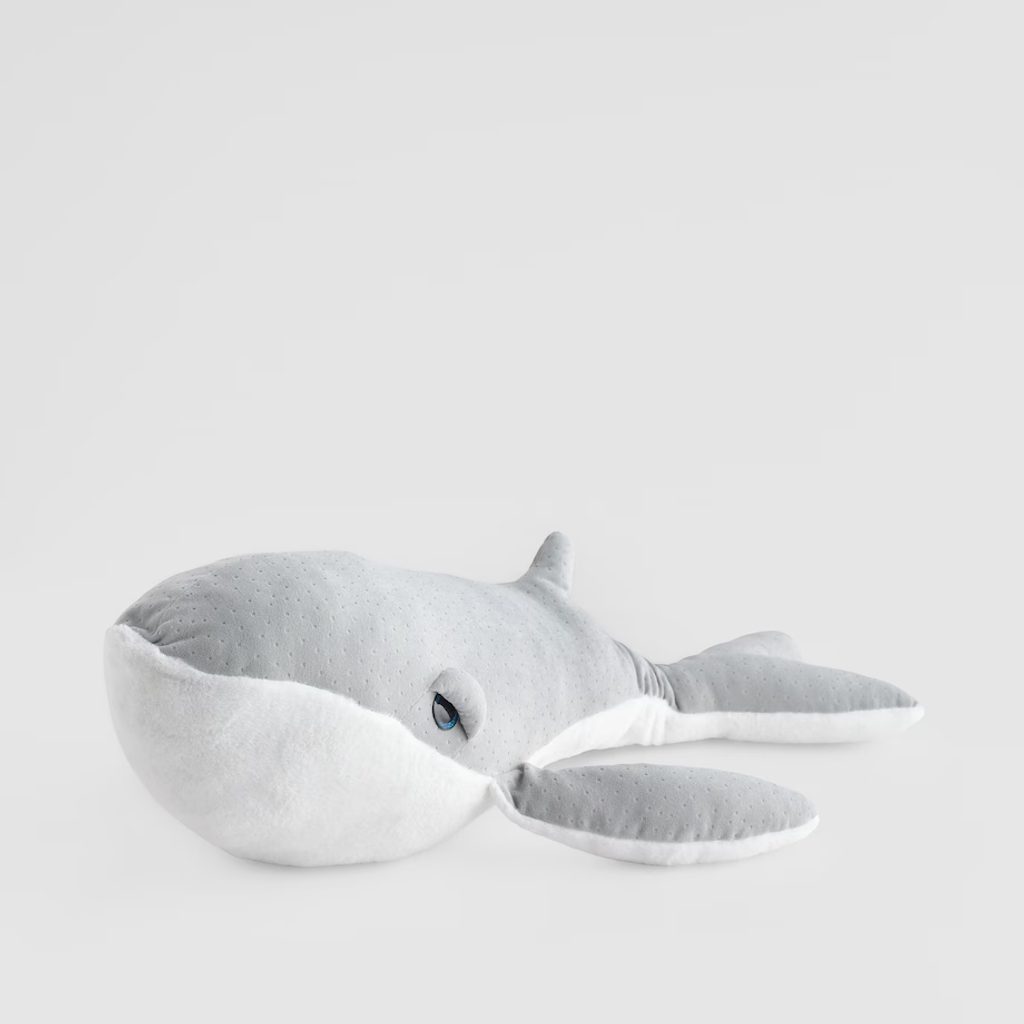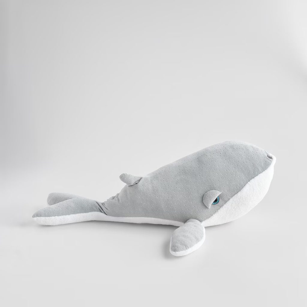 Puha, ölelni való plüss bálna , ami azonnal belopja magát a szívedbe. Kedves megjelenésével tökéletes társ pihenéshez, dekorációnak vagy ajándéknak is. Kellemes tapintású anyagból készült, így gyerekeknek és felnőtteknek egyaránt ideális választás.
