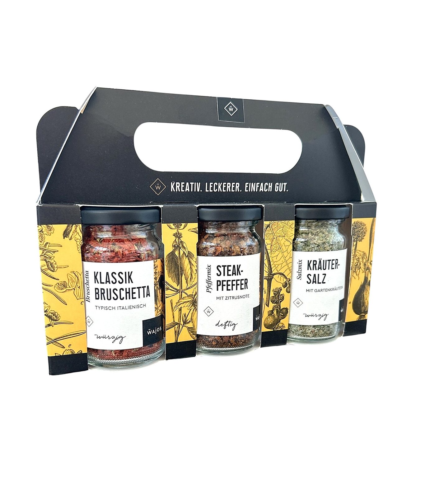 Kreatív, finom, egyszerűen jó: ez a háromrészes fűszerkollekció klasszikus bruschetta keverékkel, karakteres steak borssal és sokoldalú fűszersóval érkezik. A praktikus csomagolás és az ízek harmóniája tökéletes választás főzéshez, grillezéshez vagy ajándékba – hogy minden fogásban legyen egy csipetnyi extra.