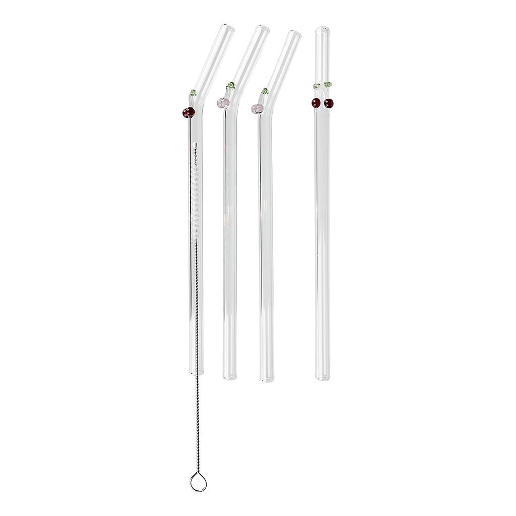 üveg szívószál tisztító kefével 5 db-os készlet, cseresznye