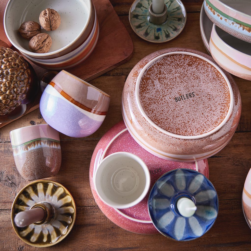 A MEDLEY termékcsalád esetében a máz kerül főszerepbe: az edényt kézzel többször egymás után reaktív mázba mártják, így minden egyes darabon egyedi színátmenetek láthatók. A színes stílus a 70-es éveket idézi, a forma ugyanakkor nagyon is modern. Robosztus és hosszú életű termékekről van szó, melyek mindennapos használat során is kiállják az idő próbáját. A termékcsaládban tányérokat, tálakat és bögréket is megtalálsz többféle színvariációban, melyeket kedvedre kombinálhatsz.