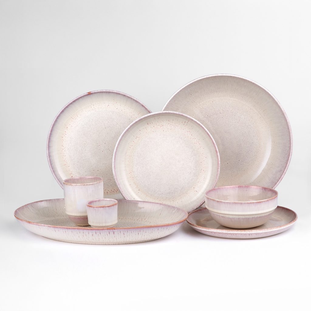 A Tavira csésze természetes zöld és bézs árnyalataival, valamint reaktív mázának apró pöttyös mintázatával minden darabot egyedivé tesz. A kézműves hatású felület meleg, organikus karaktert kölcsönöz, így a reggeli tea vagy délutáni kávé még hangulatosabb élménnyé válik. A Tavira kollekció — tányérok, tálak, bögrék és szervírozóelemek széles választéka, mind egymásra rakható kivitelben — kiváló minőségű kőedényből készül, mikróba és mosogatógépbe is alkalmas. A sorozat zöld és rózsaszín színben érhető el.