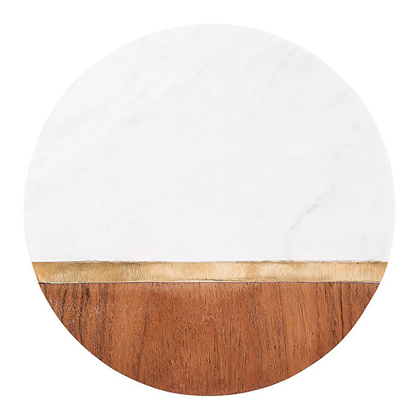 márvány/fa alátét sárgaréz csíkkal, Ø 30 cm
