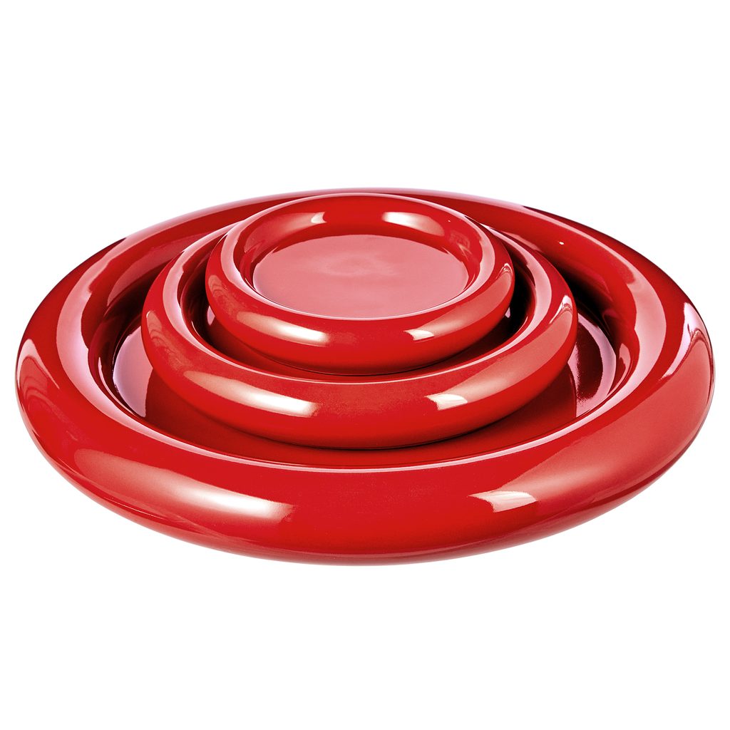 Elegáns vacsora: A 27 cm-es Groove tányér fényes mázas kőedényből készül, mosogatógép- és mikróbarát. Jellegzetes széles pereme adja karakteres megjelenését. A Groove kollekció több méretben, piros és rózsaszín árnyalatban is elérhető – szabadon kombinálható.