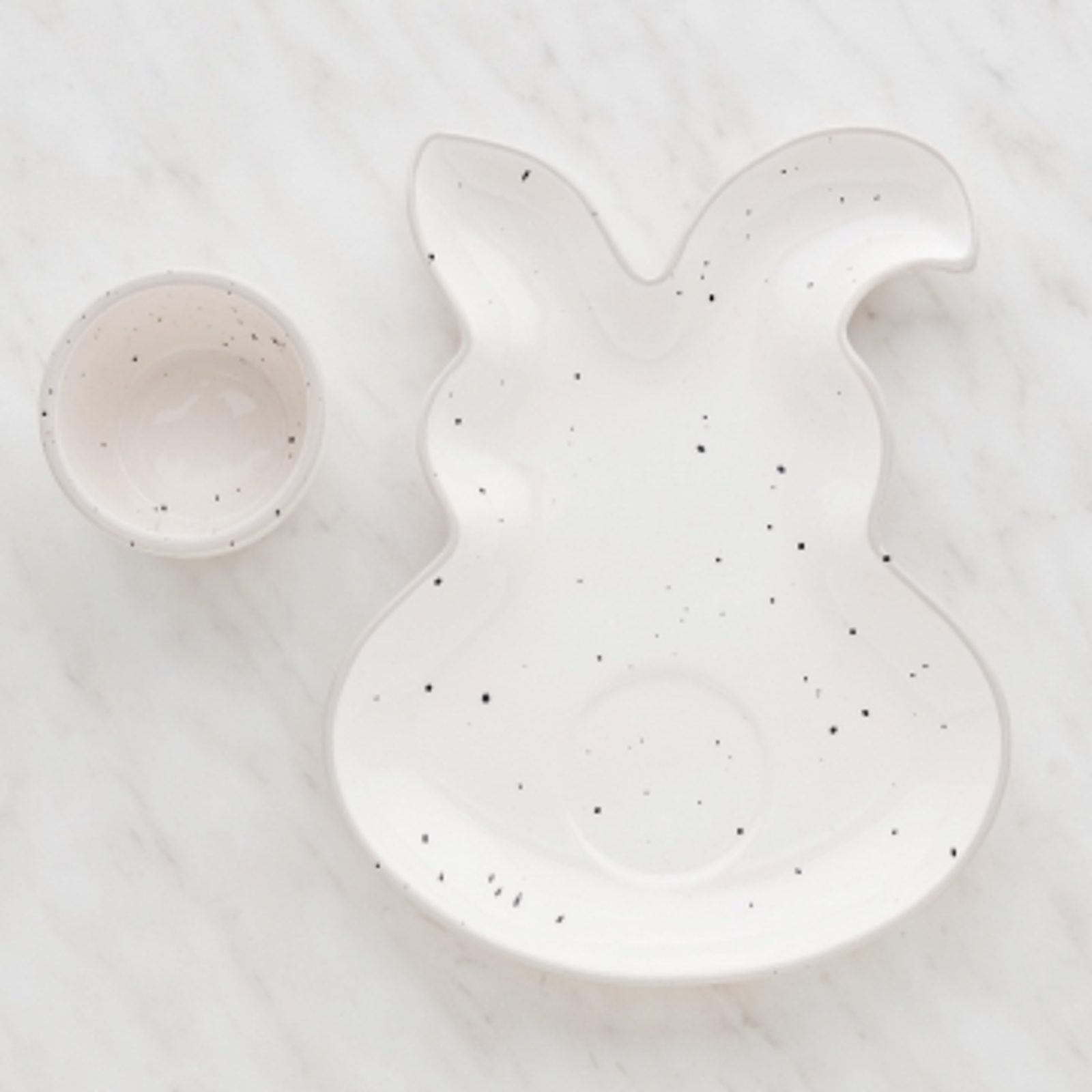 Répa, szárzeller, paprika és a kedvenc krémed - ebben a nyuszis tálban és a hozzá tartozó kis tálkában stílusosan tálalhatod az egészséges ropogtatnivalókat.