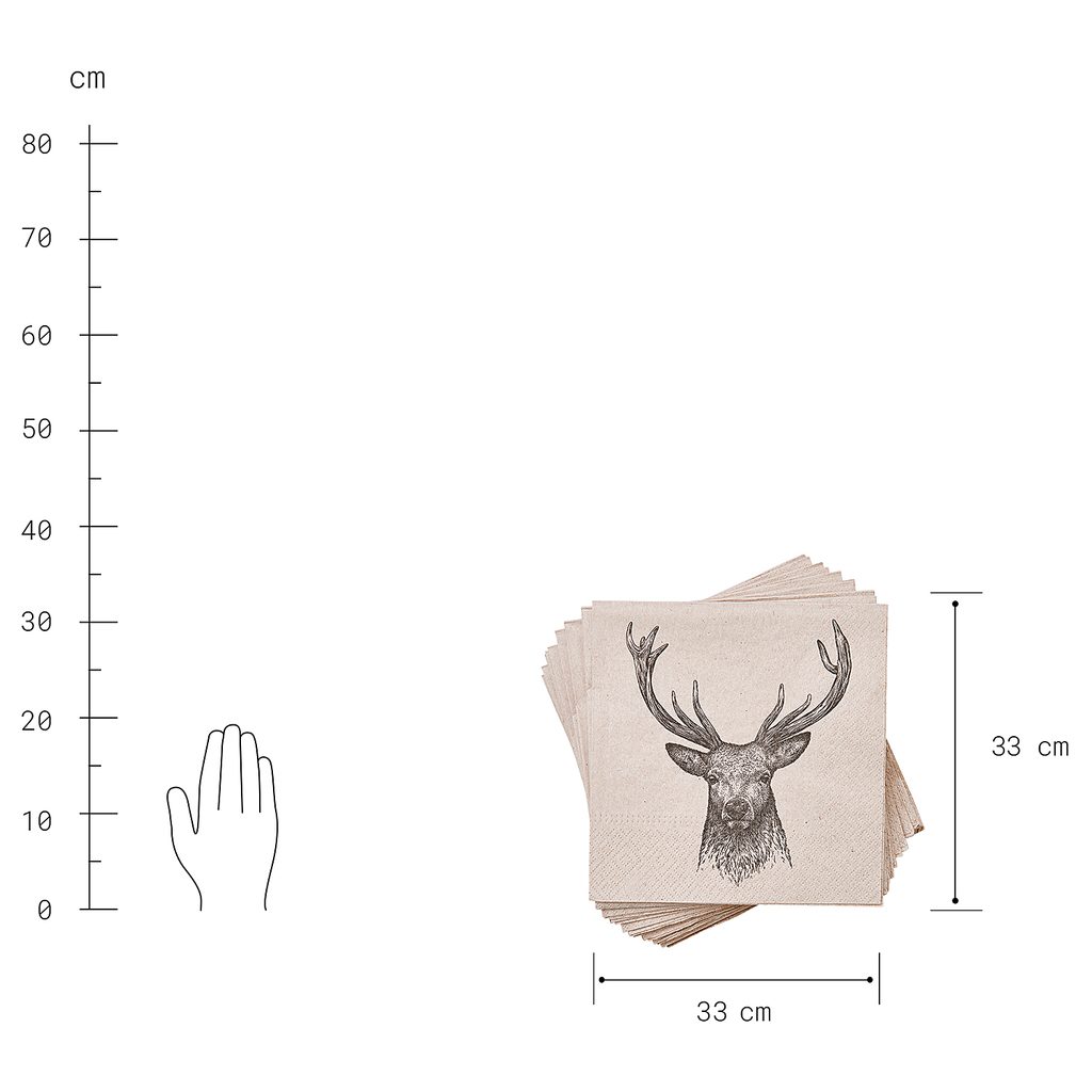 újrahasznosított papírszalvéta, rénszarvas 33 x 33cm