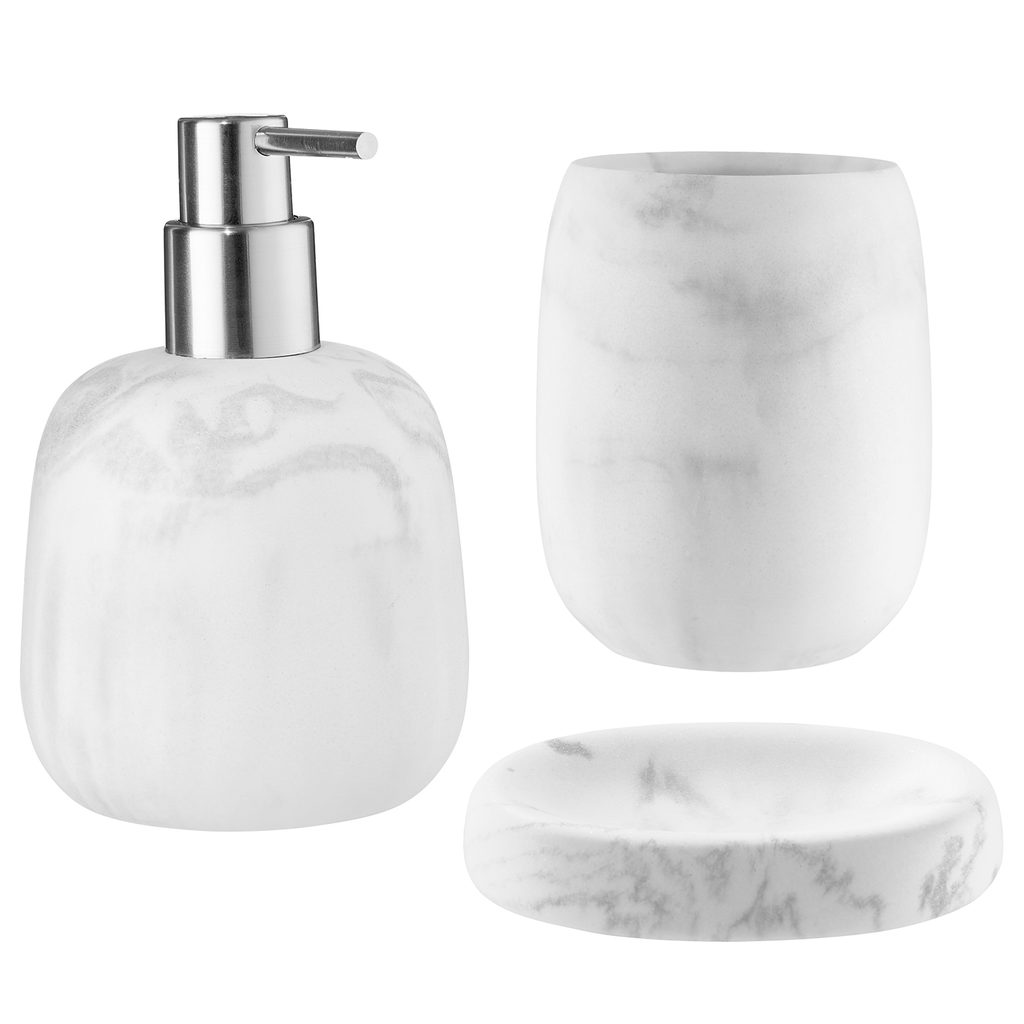 Az elegáns EN SUITE márványmintás fürdőszobai kiegészítők semmilyen fürdőszobából nem hiányozhatnak. A kollekció szappanadagolóból, szappantartóból, és fogkefetartóból áll.