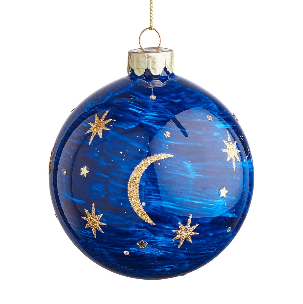 üveg karácsonyfadísz, hold és csillagok Ø 8cm