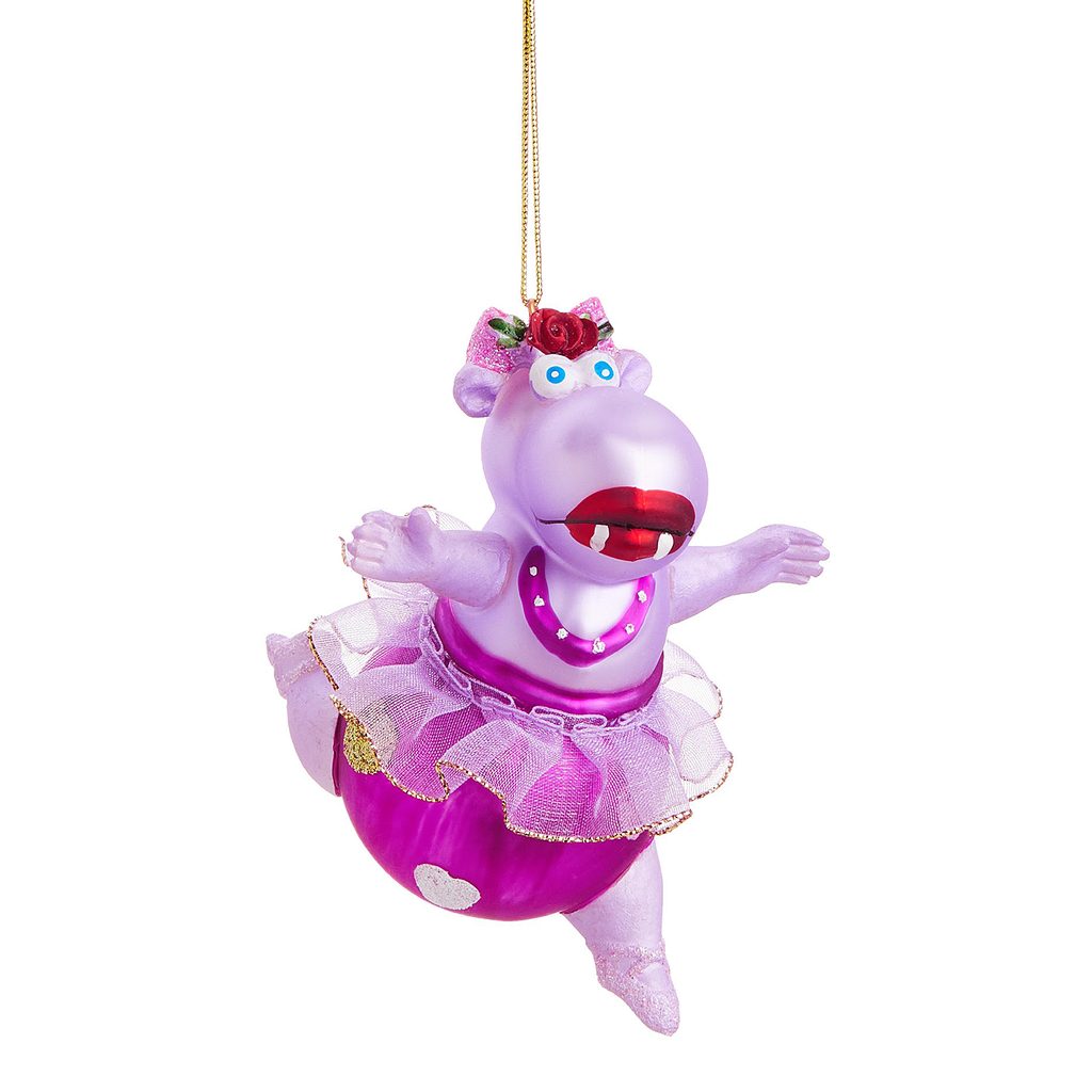 üveg karácsonyfadísz, balettozó rózsaszín víziló 13cm