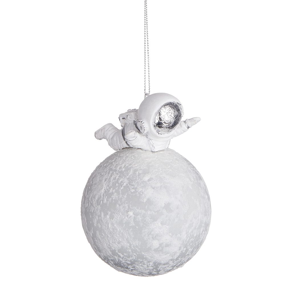 üveg karácsonyfadísz, űrhajós a Holdon 12cm