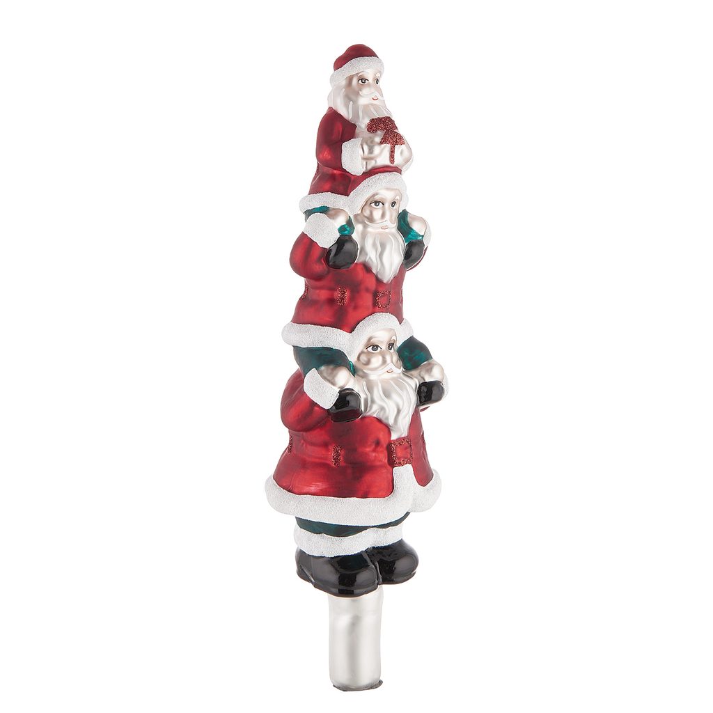 üveg karácsonyfa csúcsdísz, mikulások 32cm