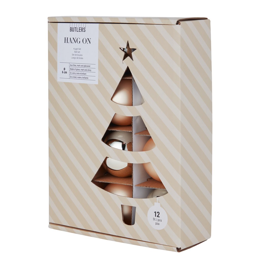 üveg karácsonyfadísz 12 darab Ø 6 cm , pezsgőszín