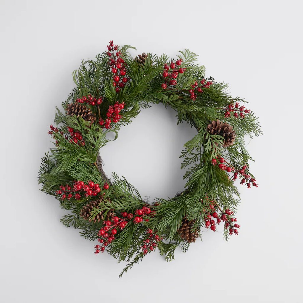 Klasszikus ünnepi hangulat modern fényekkel: ez a látványos, 65 cm átmérőjű koszorú sűrű fenyőágakkal és élénk piros bogyókkal díszítve hozza el a tél varázsát. A beépített LED égők meleg fényt árasztanak, így nappal dekoratív, este pedig meghitt fényforrás. Ajtóra, falra vagy kandalló fölé függesztve is lenyűgöző látványt nyújt – tökéletes választás az ünnepi otthonhangulathoz.