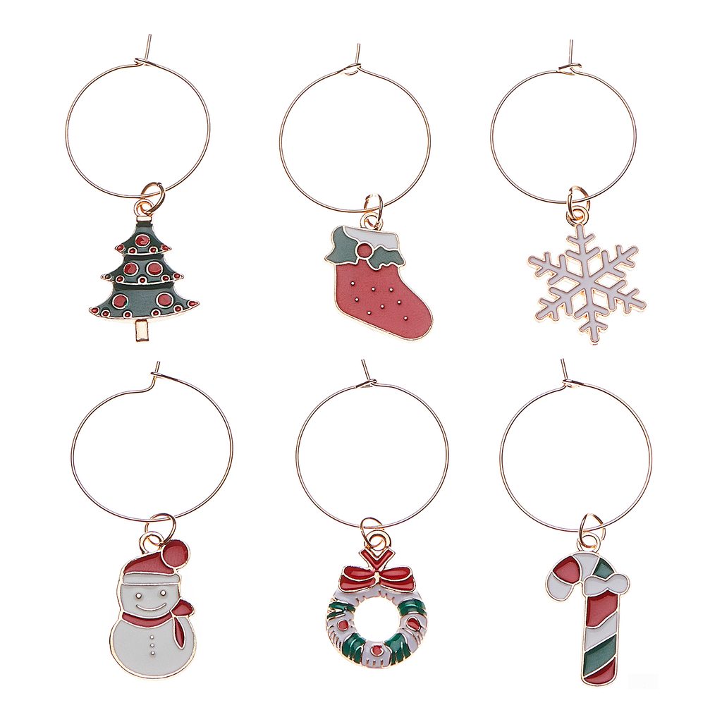 karácsonyi pohárjelölő 6 db-os szett, színes