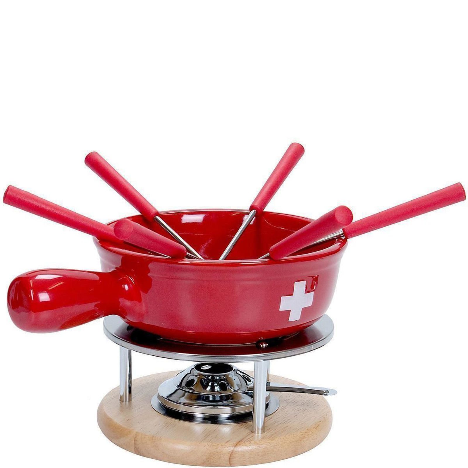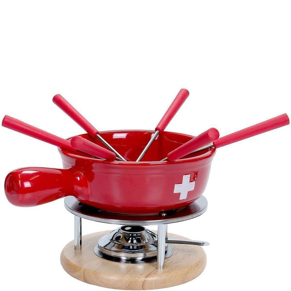 Már maga a sajtfondü neve „Svájci Csók” úgy hangzik, mint egy szerelmi vallomás a jó ételeknek és egy meghitt este az ínyenceknek. Ez a 9 részes szett tartalmaz egy svájci kinézetű kerámia cserepet, 6 darab villát, egy keretet és egy égőt. Hogy milyen sajtot választasz, az teljesen rajtad múlik. A Gruyèére, az appenzelli és az ementáli sajt kombinációja rendkívüli illatot eredményez, de kipróbálhatod a francia változatát is, ami ementáli, Comté és Beaufort. Természetesen zöldségeket vagy kenyérdarabokat is mártogathatsz. Bon appétit! Magassága: 16 cmÁtmérője: 20 cmSzíne: piros