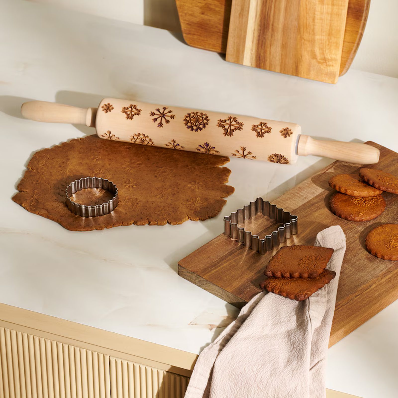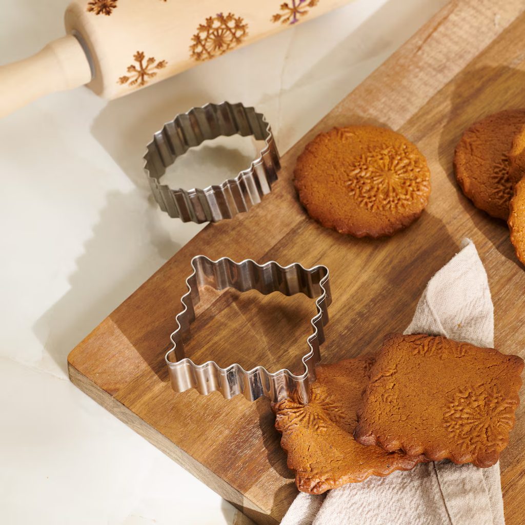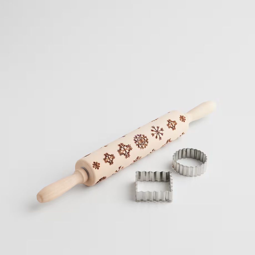 Varázsolj téli mesét a konyhába ezzel a dekoratív sodrófával, mely hópehelymintáival ünnepi hangulatot nyom a tésztába. A fém kiszúrók klasszikus formái és hullámos szélei tökéletesek aprósüteményekhez – legyen szó karácsonyi készülődésről vagy egy meghitt délutáni sütésről.
