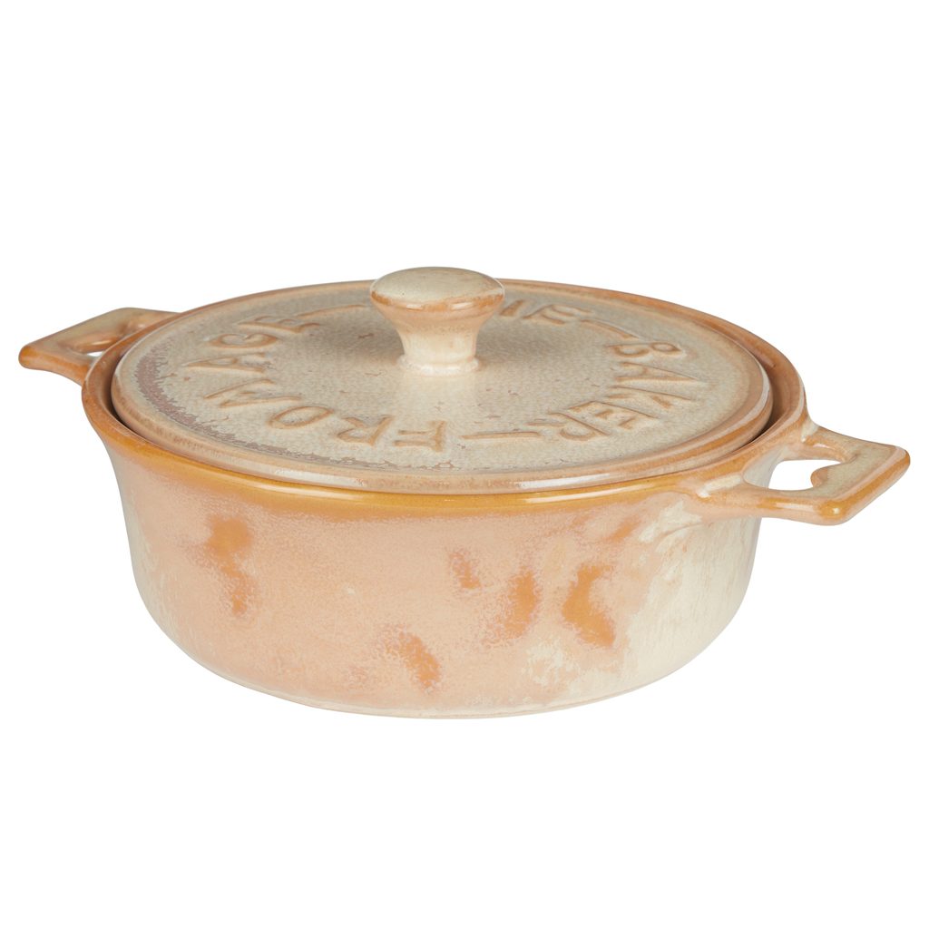 A Portimao kőedény sajtsütő tál bézs színben remekül illik a modern vidéki stílushoz, és kiválóan alkalmas például krémes sajt sütőben való megolvasztására, majd közvetlenül a tálban történő tálalására. A kerek, fedeles, mosogatógépben tisztítható sütőtál természetesen más finomságok elkészítésére is használható. A reaktív, apró pöttyökkel díszített máz minden darabot egyedivé tesz.