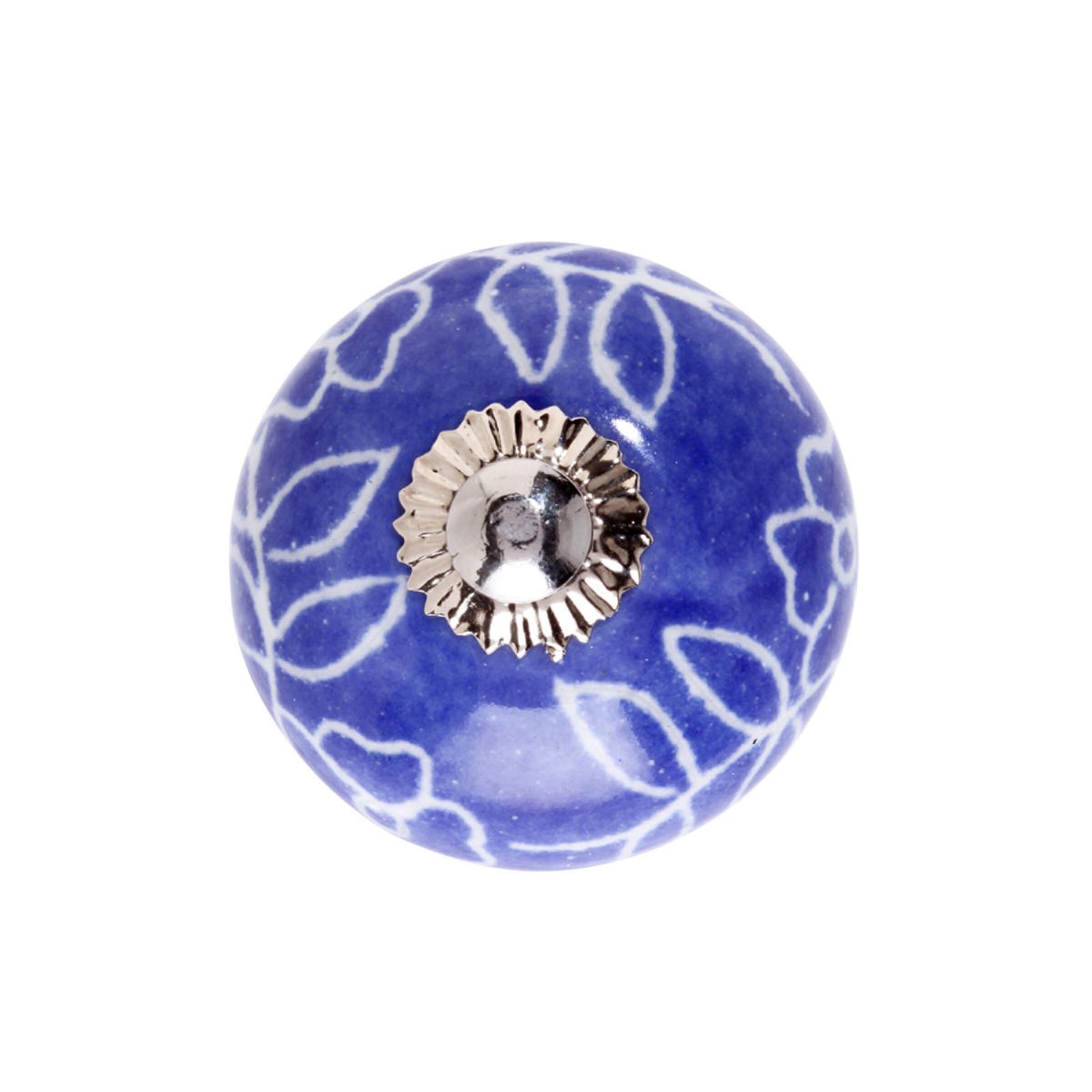 kerámia bútorgomb kék-fehér indák, Ø 5 cm