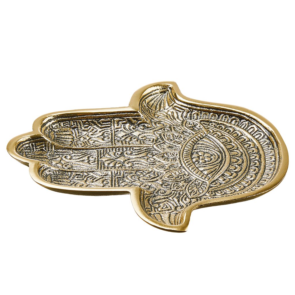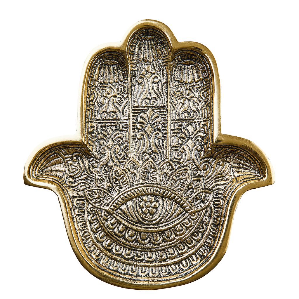 Fatima keze, más néven Hamsa a védelem, erő és boldogság szimbóluma: az arany színű dekor tál szimbolikus jelentése az otthonod bármely pontját pozitív energiával tölti fel. Tipp: Különösen jól harmonizál a boho, az ázsiai és a keleti stílusokkal.