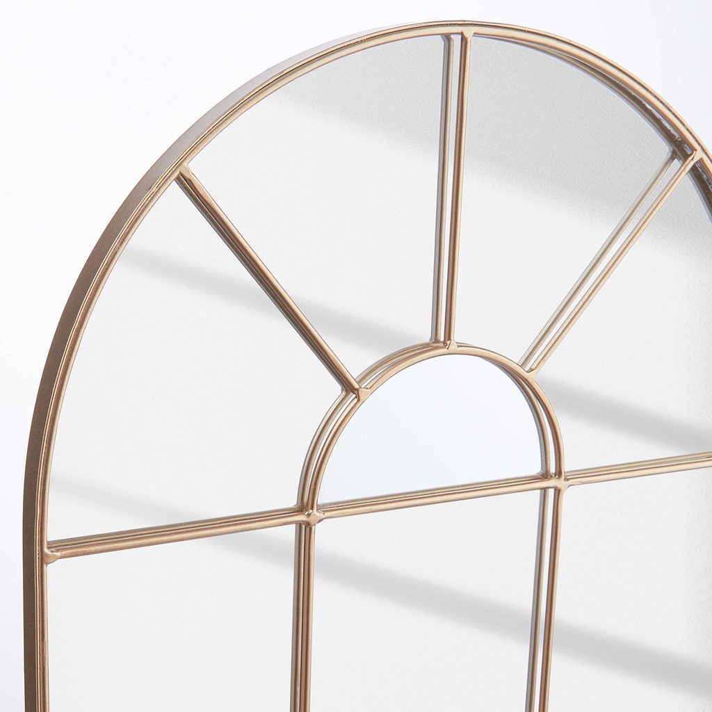 Az aranyozott fém keretes FINESTRA ablak tükör ragyogó fényt varázsol a nappalidba és eleganciával tölti meg a teret. Rakj mellé divatos vázákat, lámpákat és arany dekorációs tárgyakat a még ragyogóbb összhangért. Még egy méretben elérhető.