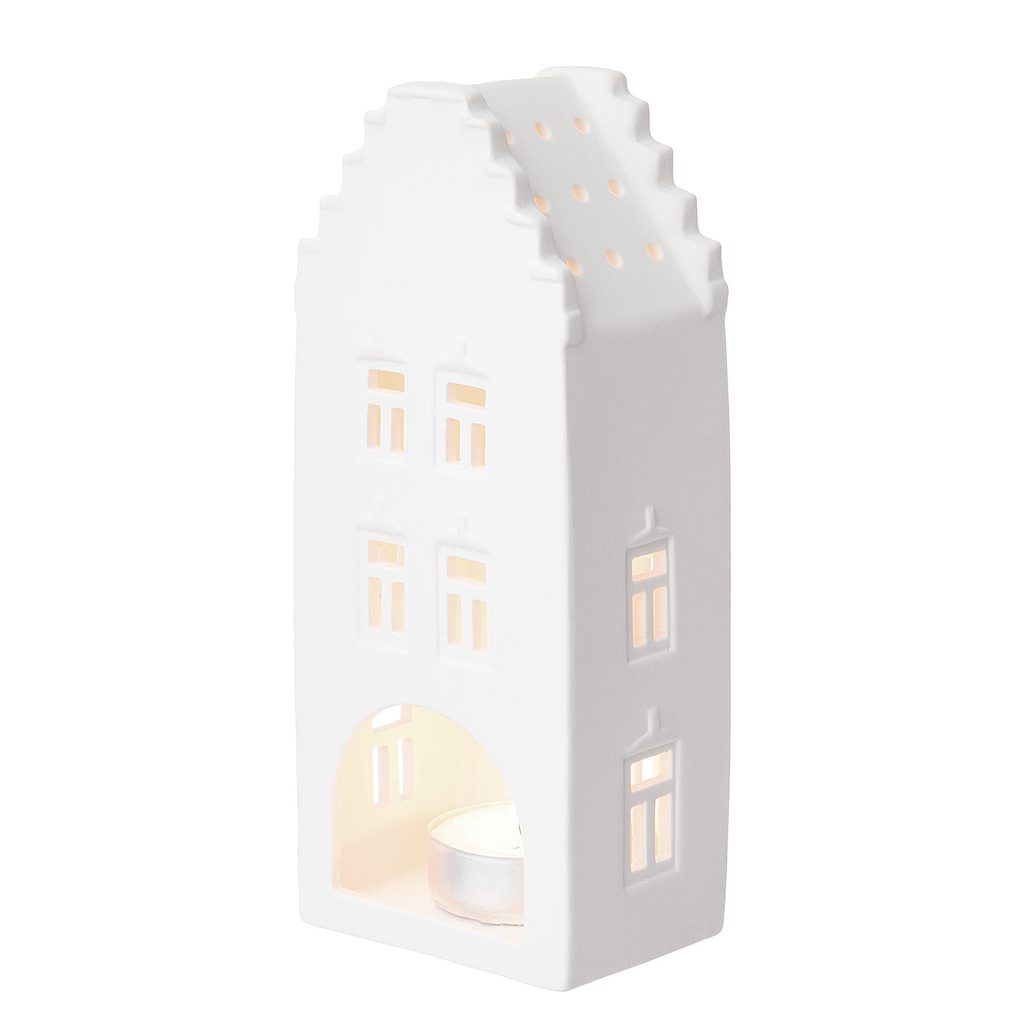 A ház formájú AMSTERDAM mécsestartó fehér kerámiából és sok szeretettel készült. A házra sok ablakot terveztünk, hogy átszűrődhessen a csillogó gyertyafény. Többféle változatban elérhető a kínálatunkban.