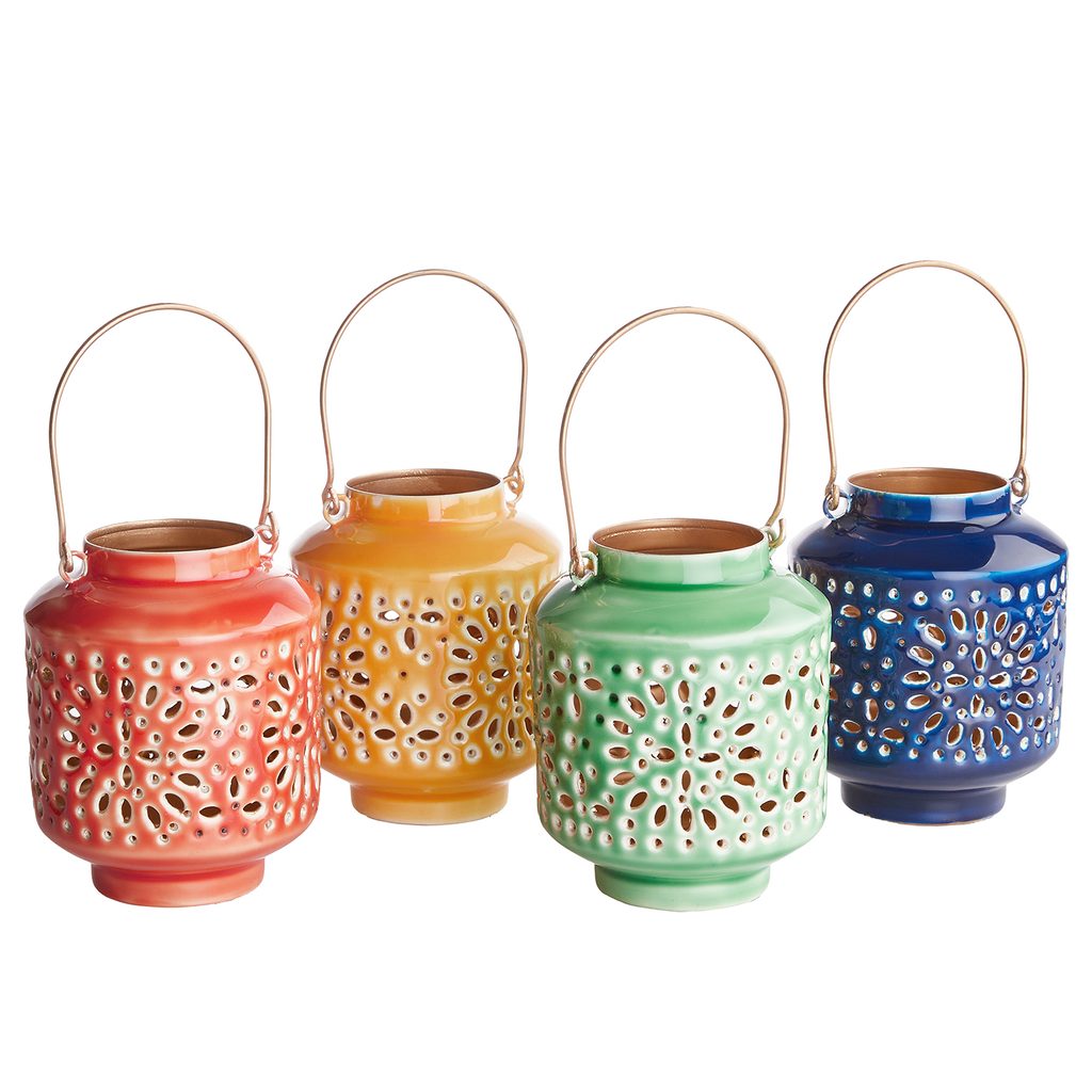 Álmodozz Fezről és Marrakeshről, egzotikus bazárokról és művészien díszített belső udvarokról! A BLUE MAROCCO lámpások pompás nyári színekkel és keleti mintázattal díszítik fel otthonodat. Asztaldísznek, ajándéknak vagy kerti partikra is ideális. Többféle színben és méretben kapható, melyek remekül kombinálhatóak egymással.