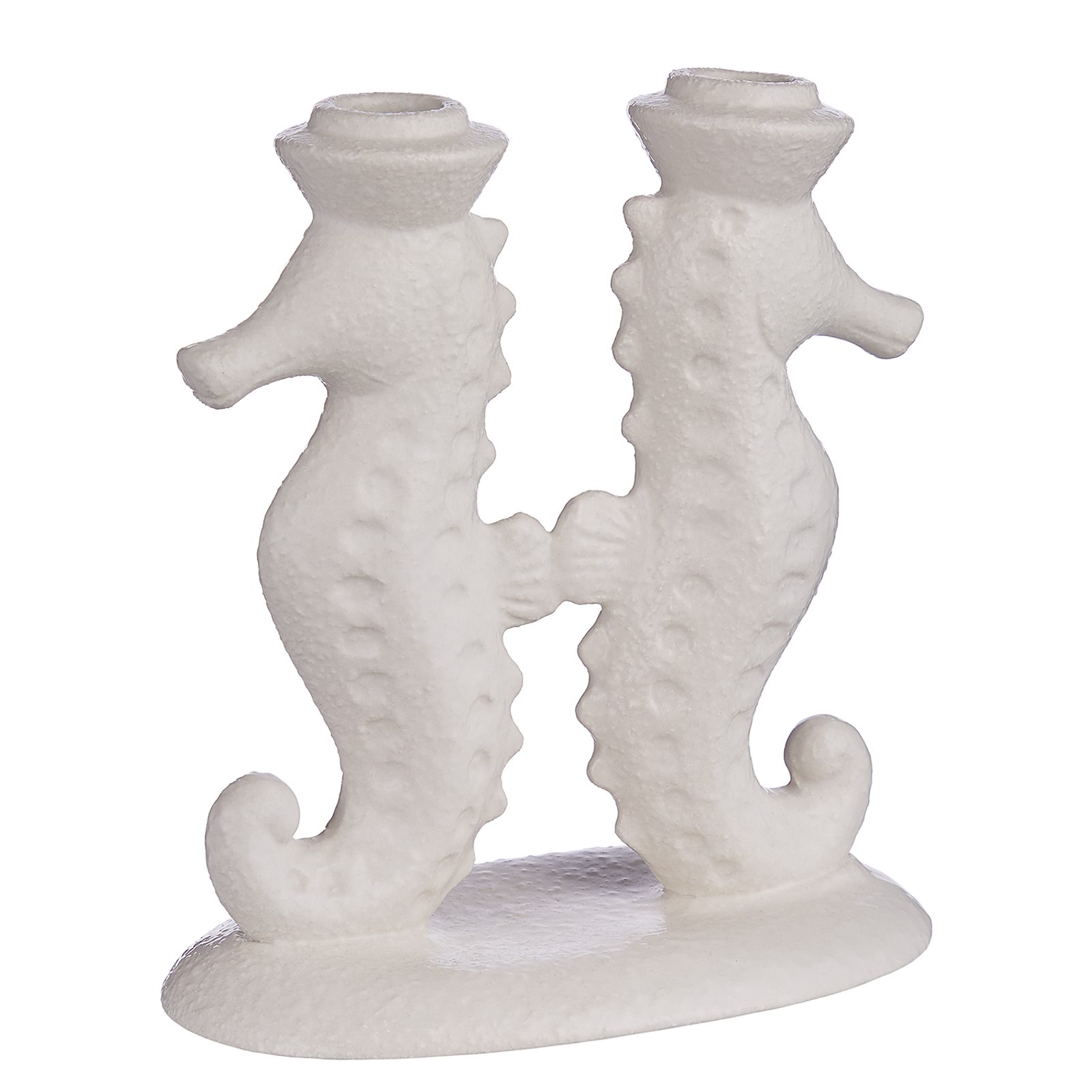 A kőedényből készült SEASIDE gyertyatartó két csikóhala szoborszerű dekorációként csempész tengerparti hangulatot a terített asztalra, a komódra vagy a dohányzóasztalra.