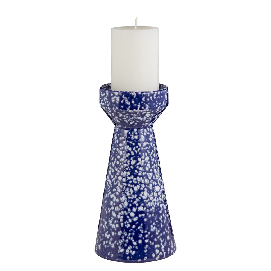 A markáns formájú, pettyezett felületű Speckle oszlopgyertyatartó karakteres hangsúlyt ad bármely helyiségnek. A kék színű, kőedényből készült darab különösen jól működik akkor, ha egy visszafogottan dekorált asztalnak szeretnél egy kis pluszt adni, vagy ha önálló dekorációként helyezed el egy komódon vagy kisebb oldalasztalon. Letisztult, mégis látványos megjelenése miatt könnyen válik a tér egyik meghatározó elemévé.