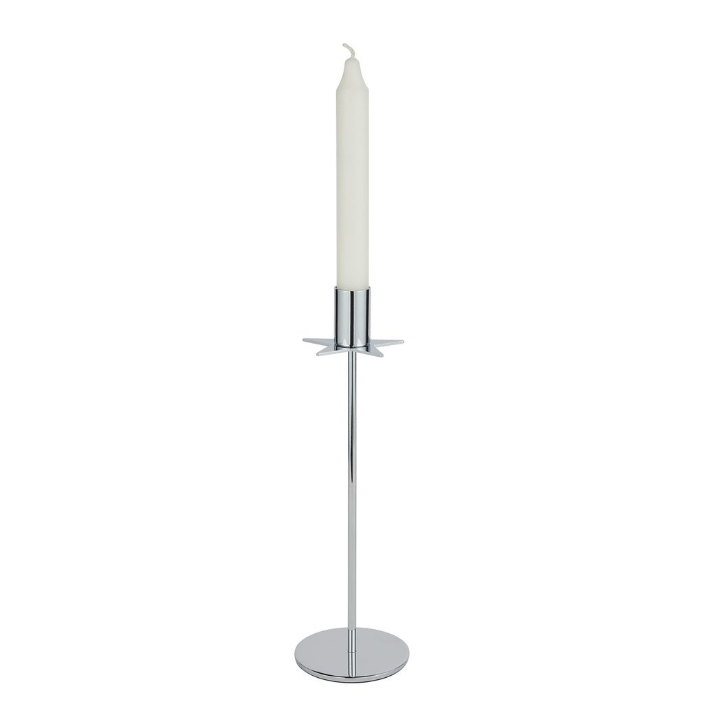 A csillagmotívummal díszített, ezüstszínű fém gyertyatartó meghitt fényt és karácsonyi hangulatot varázsol az asztalra – legyen szó ünnepi vacsoráról vagy egy csendes, gyertyafényes estéről. Többféle változatban elérhető, így könnyedén kombinálható más darabokkal is, ha egységes, mégis játékos összhatást szeretnél.
