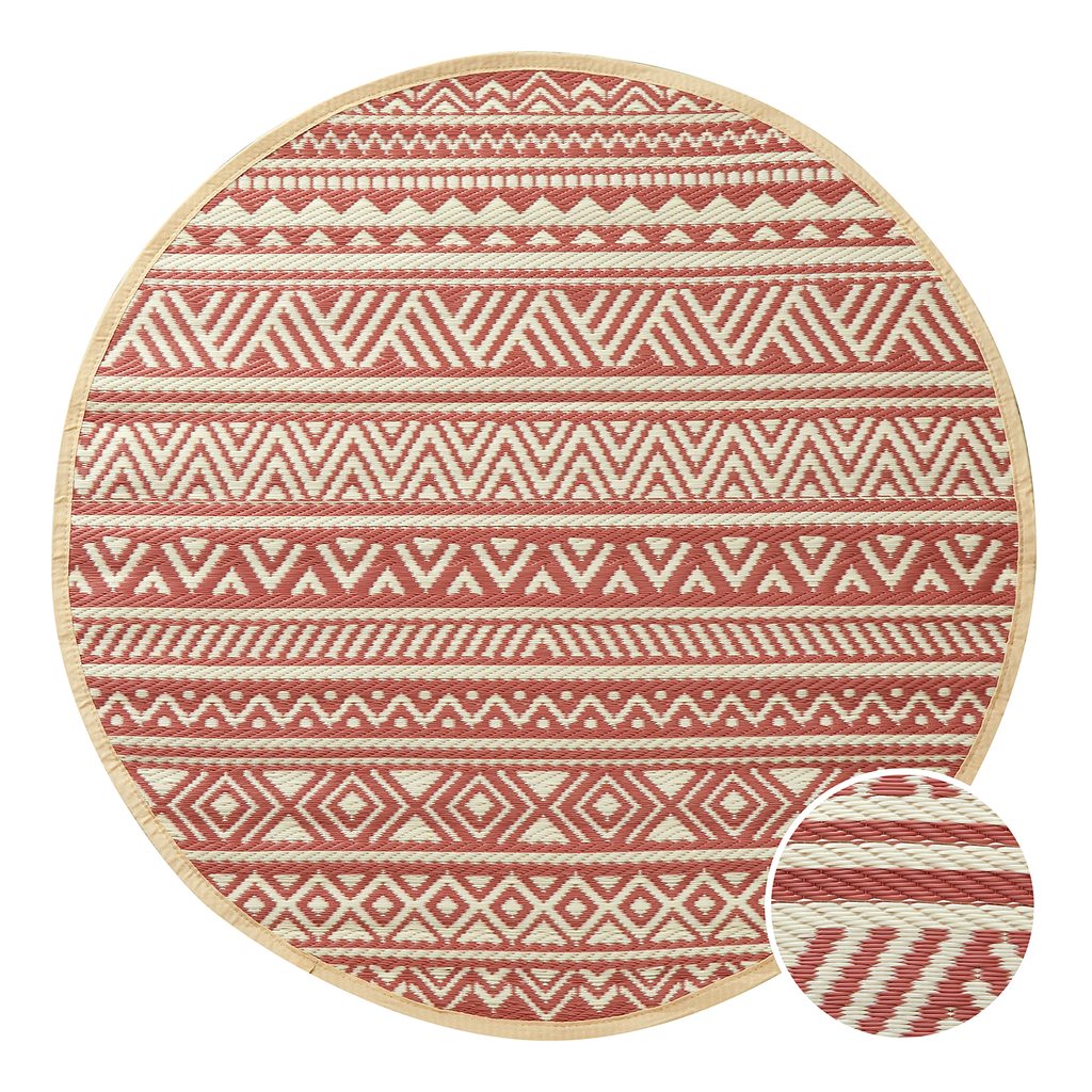 kültéri szőnyeg, csíkos marsala vörös-krémszín Ø118cm