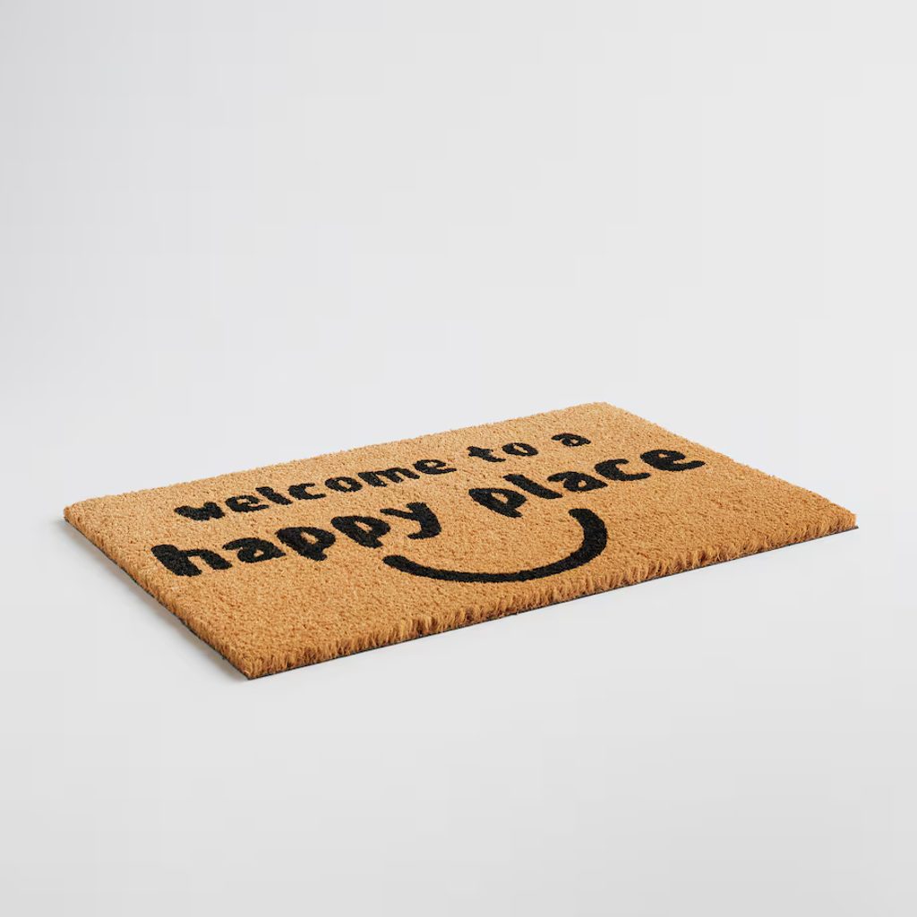 Ez a természetes kókuszrost lábtörlő játékos feliratával – „welcome to a happy place” – már az ajtóban megalapozza a jó hangulatot. Letisztult dizájnja és pozitív üzenete barátságos, otthonos légkört teremt, miközben praktikus kiegészítője marad a bejáratnak.