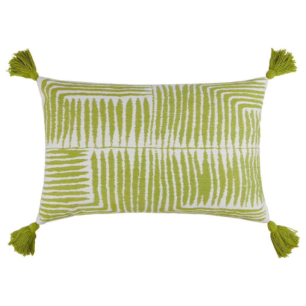 A GAIA párna hímzett, zöld leveleivel egyszerre csempész frissességet és stílust a nappaliba vagy a hálószobába, melyet a játékos bojtok tesznek még egyedibbé.