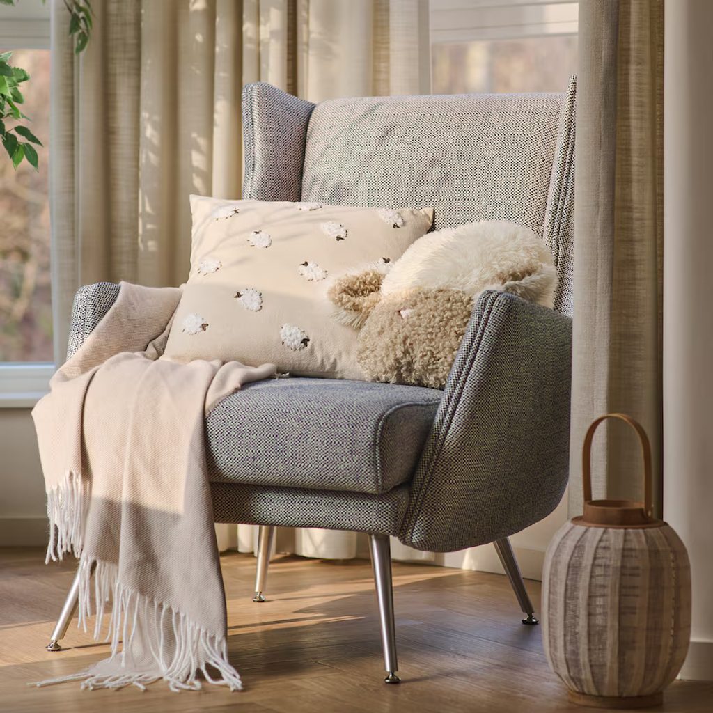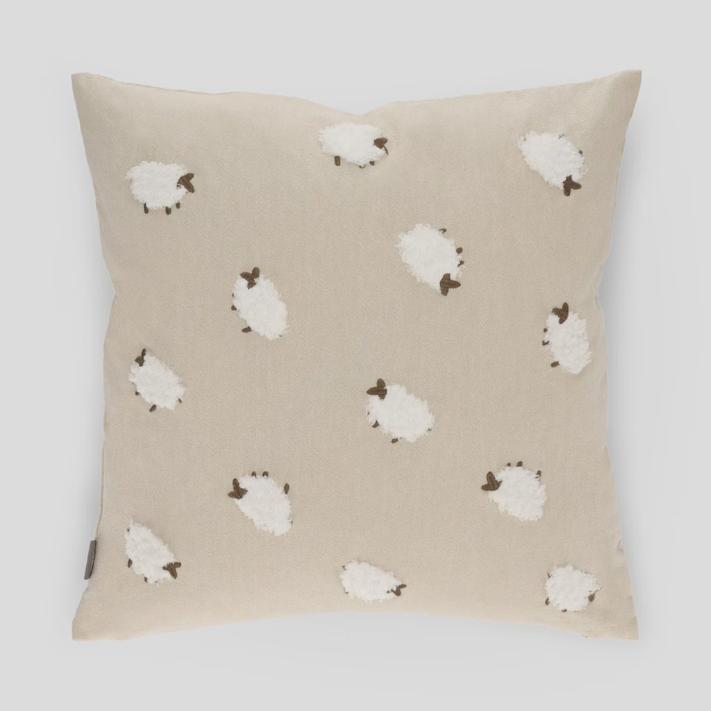 Kellemes bézs szín és játékos textúra a bárányok kitüremkedő gyapjainak köszönehtően. Ez a párna garantáltan az olvasófoteled kedvence lesz.
