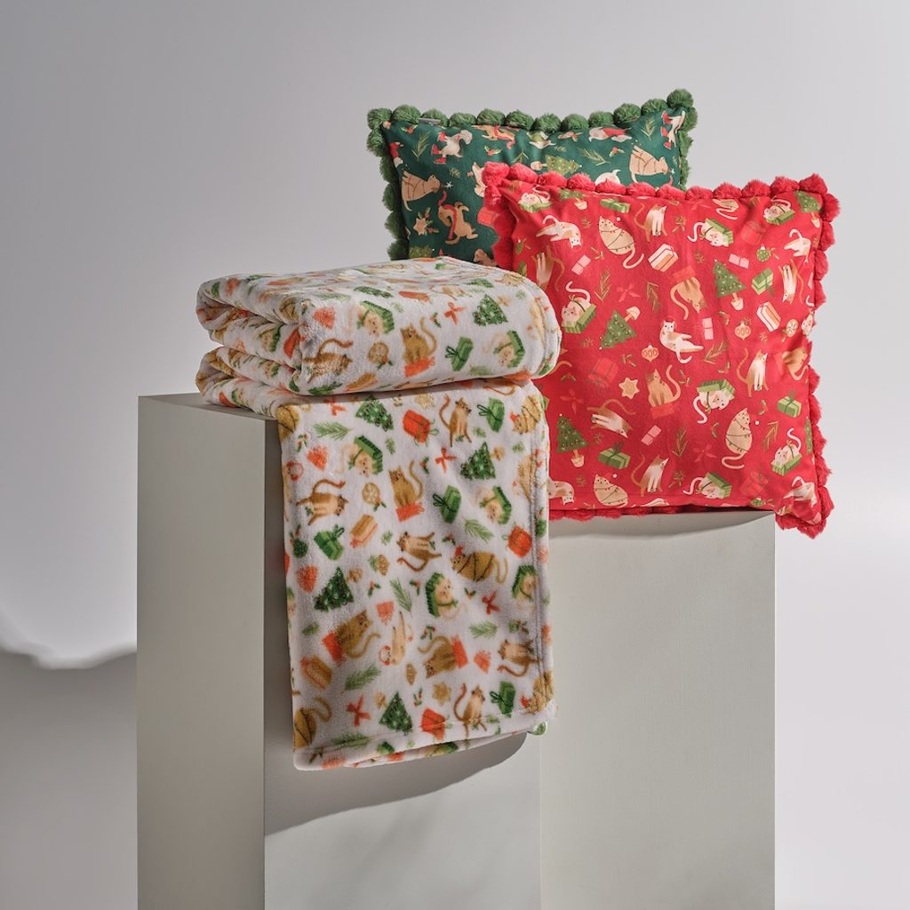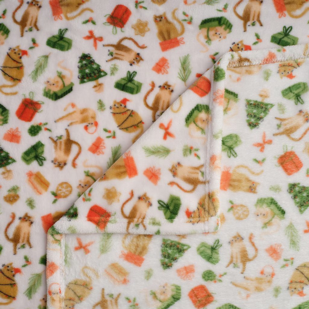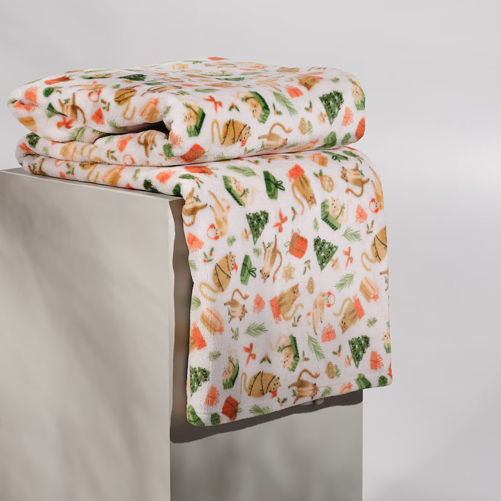 Cuki cicák karácsonyi hangulatban. Ez a puha, meleg takaró tökéletes társ a bekuckózós napokra, miközben vidám részleteivel otthonosságot visz a térbe. Macskás barátoknak remek ajándékötlet!