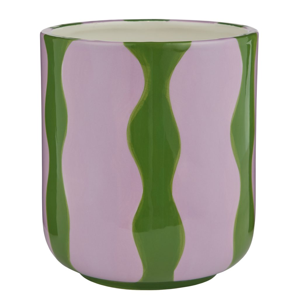 A Dopamine virágcserép grafikus lila és zöld hullámmintája modern, friss hangulatot visz az otthonodba. A finom rózsaszín kőedény kaspó sokféle szobanövénnyel jól mutat, és könnyedén illeszkedik különböző enteriőrökbe.