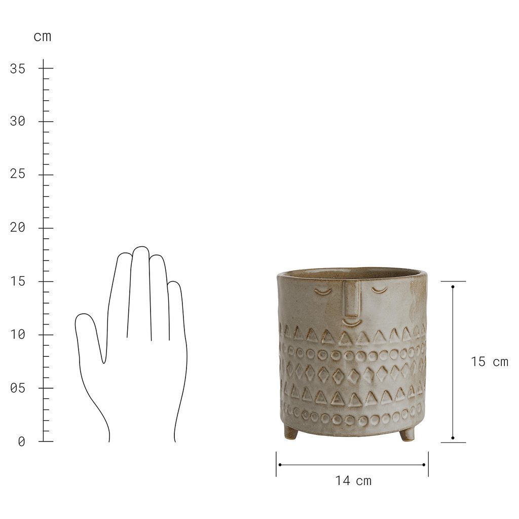 kaspó arc motívummal, világosbarna Ø14cm
