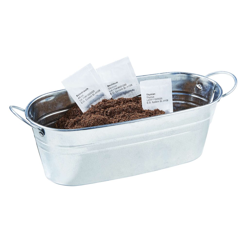 Metélőhagyma, kakukkfű, bazsalikom. A friss fűszerek új színt ízt adnak ételeiknek. Ez az ültető tál tartalmaz mindent, amire szükséged lehet egy saját kis fűszeres kert megműveléséhez. Tökéletes ajándék lelkes amatőr kertészeknek, vagy azoknak, akik azzá szeretnének válni. Javasolt a fiatal hajtásokat rendszeresen visszametszeni.