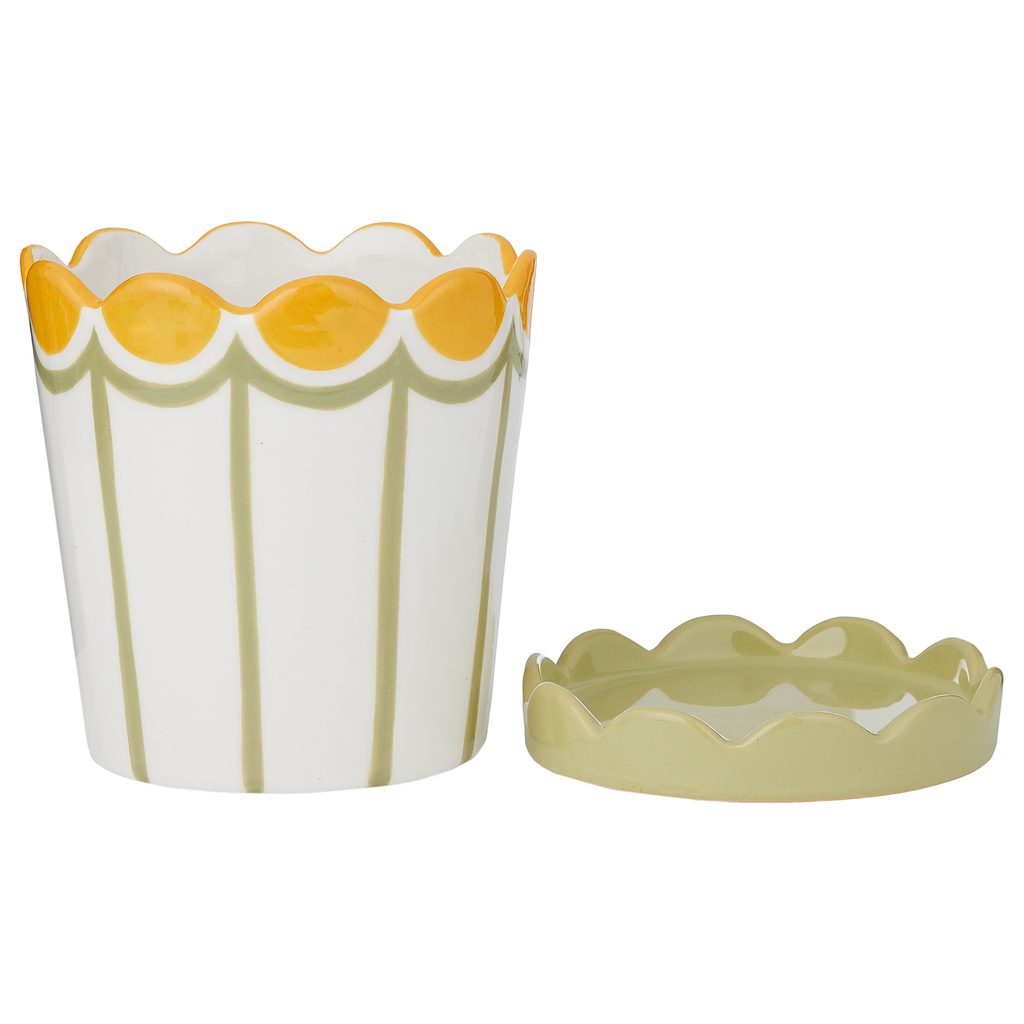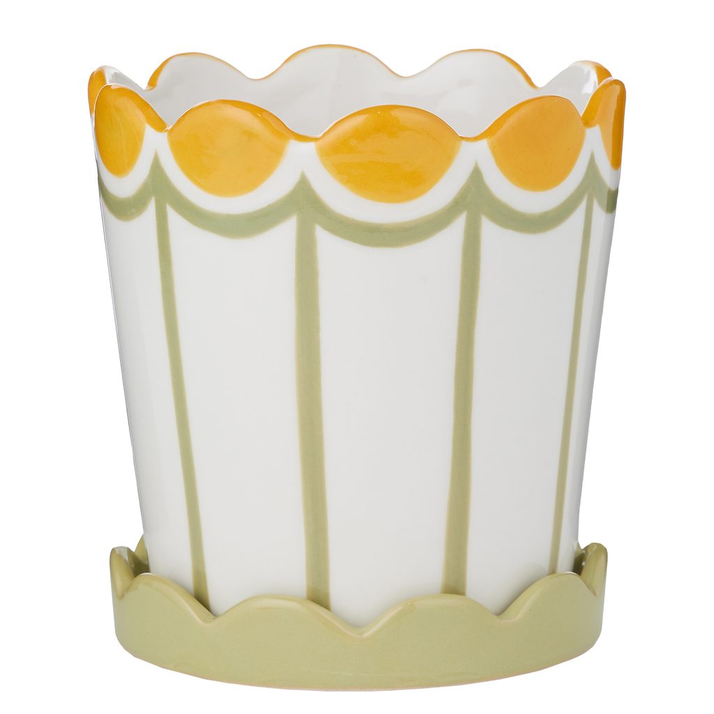 kerámia kaspó alátéttel Ø 13cm , zöld csíkos