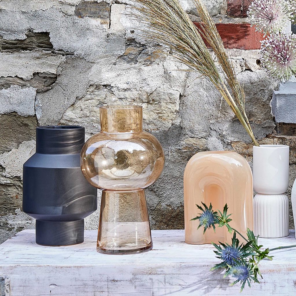 A divatos megjelenésű, fekete kerámiából készült RUNA vázával könnyedén felfrissítheted a terített asztalt vagy a komódot. A váza egyszerű formája és fekete színe tökéletesen harmonizál a szárított virágcsokrokkal, ágakkal, de a színpompás, frissen vágott virágok szépségét is kiemelheted vele.