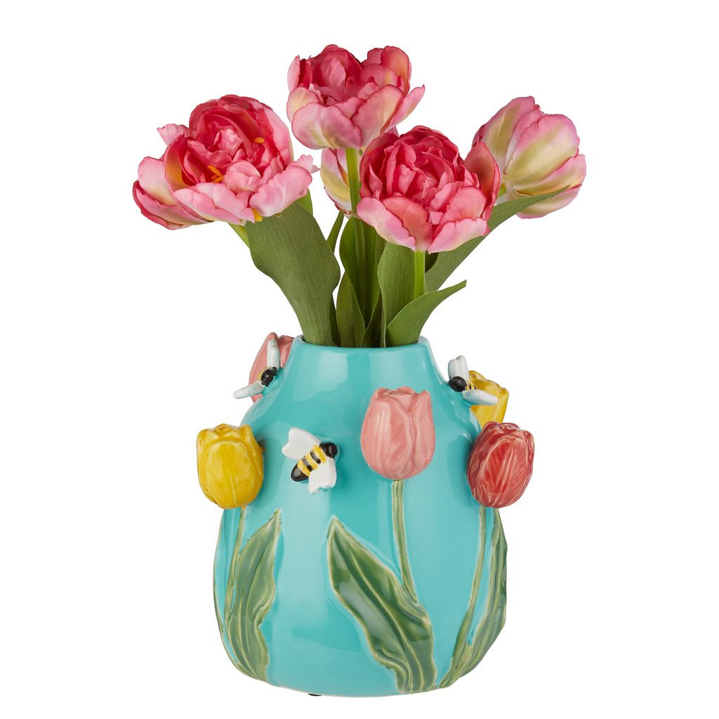 Olyan életteli, mint egy tavaszi rét: a Spring kerámia váza Méhecske & Tulipán motívummal igazi frissességet visz az otthonodba. A gondosan, szeretettel kidolgozott 3D‑dekorációval díszített váza dekoratív módon köszönti az év legszebb időszakát. Egy további változatban is elérhető.