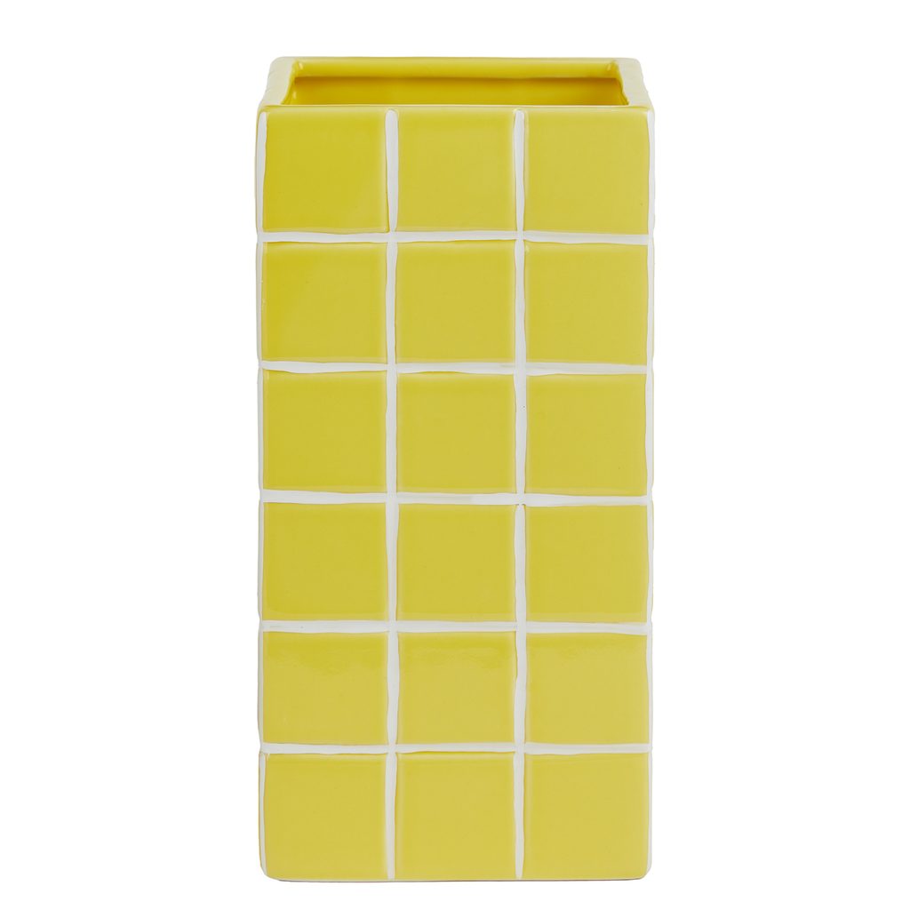 A Tiles kerámia váza modern, csempemintás megjelenésével és szögletes formájával karakteres, trendi darab. Sokoldalúan használható: friss virágokhoz, szárazkompozíciókhoz vagy önmagában dekorációként is remekül mutat. Sárga, kék és mentazöld színekben érhető el – akár önállóan, akár kombinálva stílusos kiegészítője lesz otthonodnak vagy terített asztalodnak.