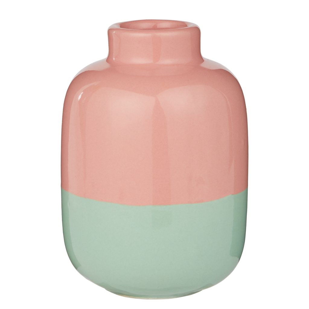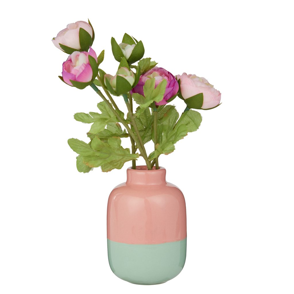 kerámia váza 10cm , rózsaszín/zöld
