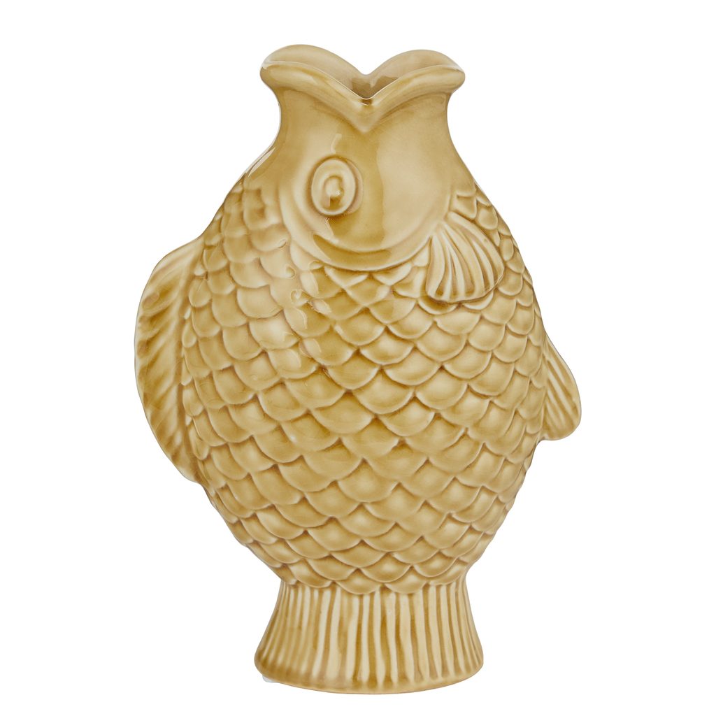 Ázsiában a hal a jólét és a bőség jelképe, a Wabi Sabi kerámia Hal váza pedig ezt a szimbolikát ötvözi a dekoratív, stílusos megjelenéssel. A sárga kőedény váza friss virágokkal, ágakkal vagy száraz kompozíciókkal is szépen mutat, és természetes, harmonikus hangulatot visz az otthonodba.
