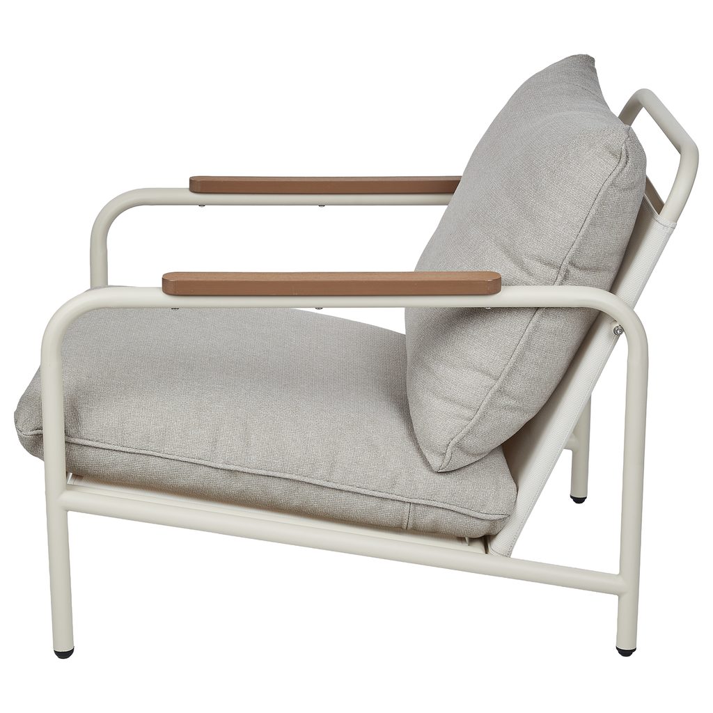 A Soulgate kerti fotel karfás kialakításával kényelmes pihenőhelyet teremt a teraszon vagy a kertben. A masszív acélváz és a puha párnák stabil, mégis komfortos ülést biztosítanak, így ideális hosszú, szabadtéri beszélgetésekhez vagy egy nyugodt olvasósarok kialakításához. A fotel zöld és bézs színben érhető el, 110 kg‑ig terhelhető, huzata pedig nem levehető.