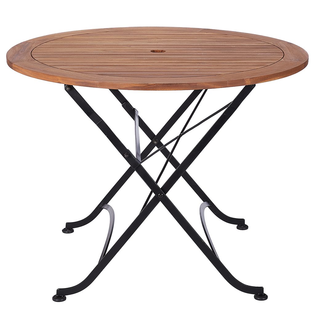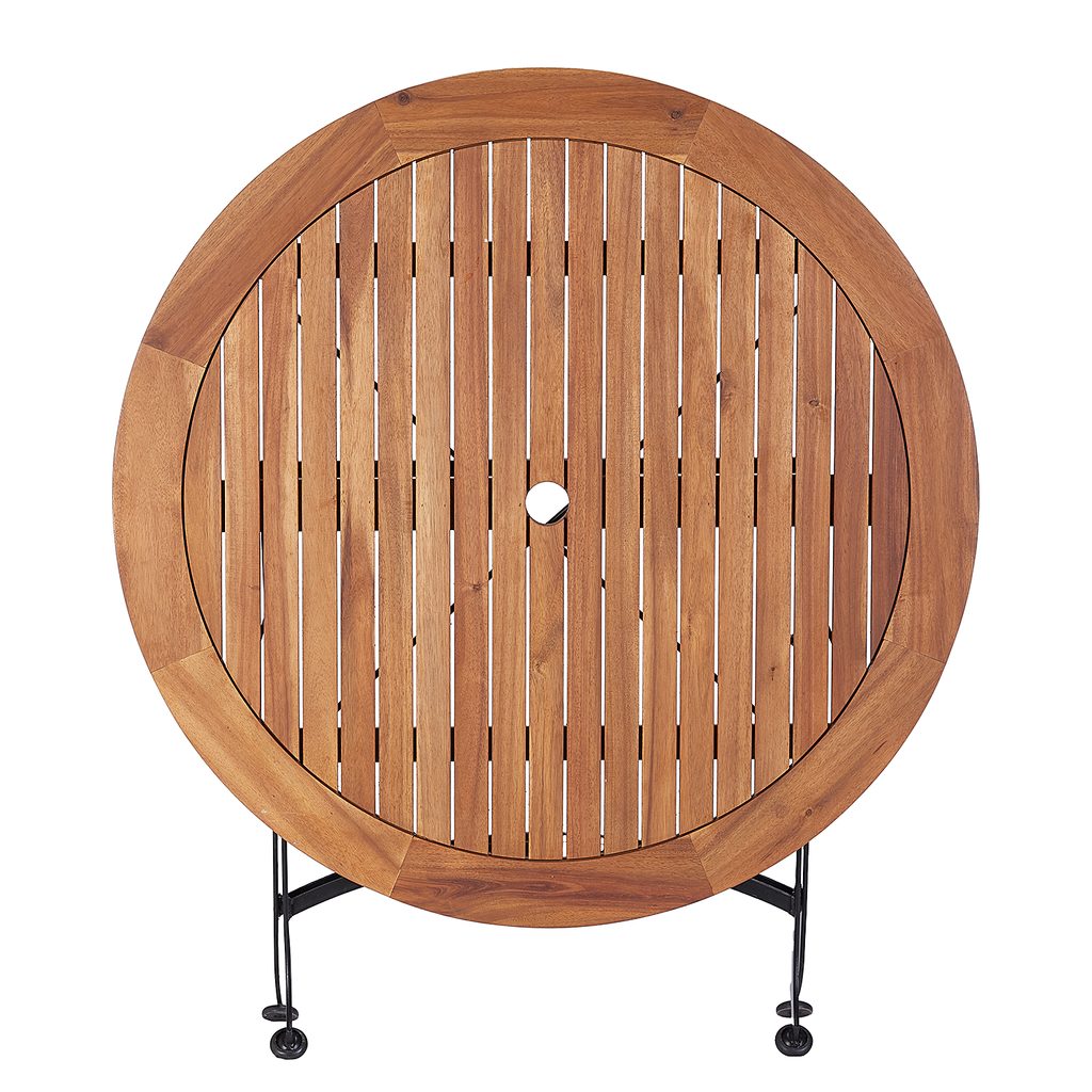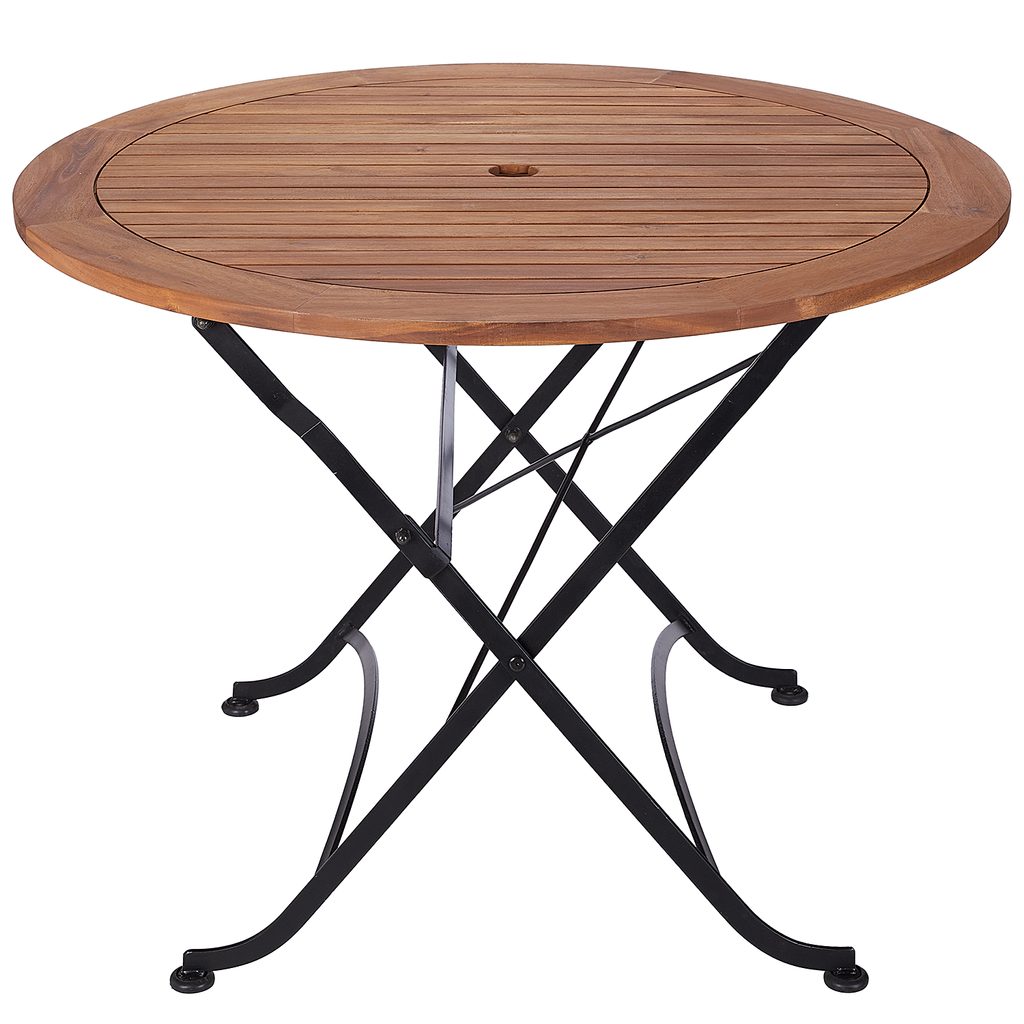 összecsukható kerti asztal, natúr-fekete Ø100 cm
