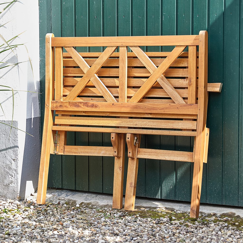 Nem kell sok a boldogsághoz, csak egy hangulatos hely a szabadban. Foglaljatok helyet az FSC®-tanúsítvánnyal rendelkező akácfából készült összecsukható mini LOVEBIRD padra, és élvezzétek a nap minden egyes sugarát. A hangulatos pad kis erkélyekre vagy teraszokra is elfér és összebújásra hív. Összecsukható, így helytakarékosan tárolható.