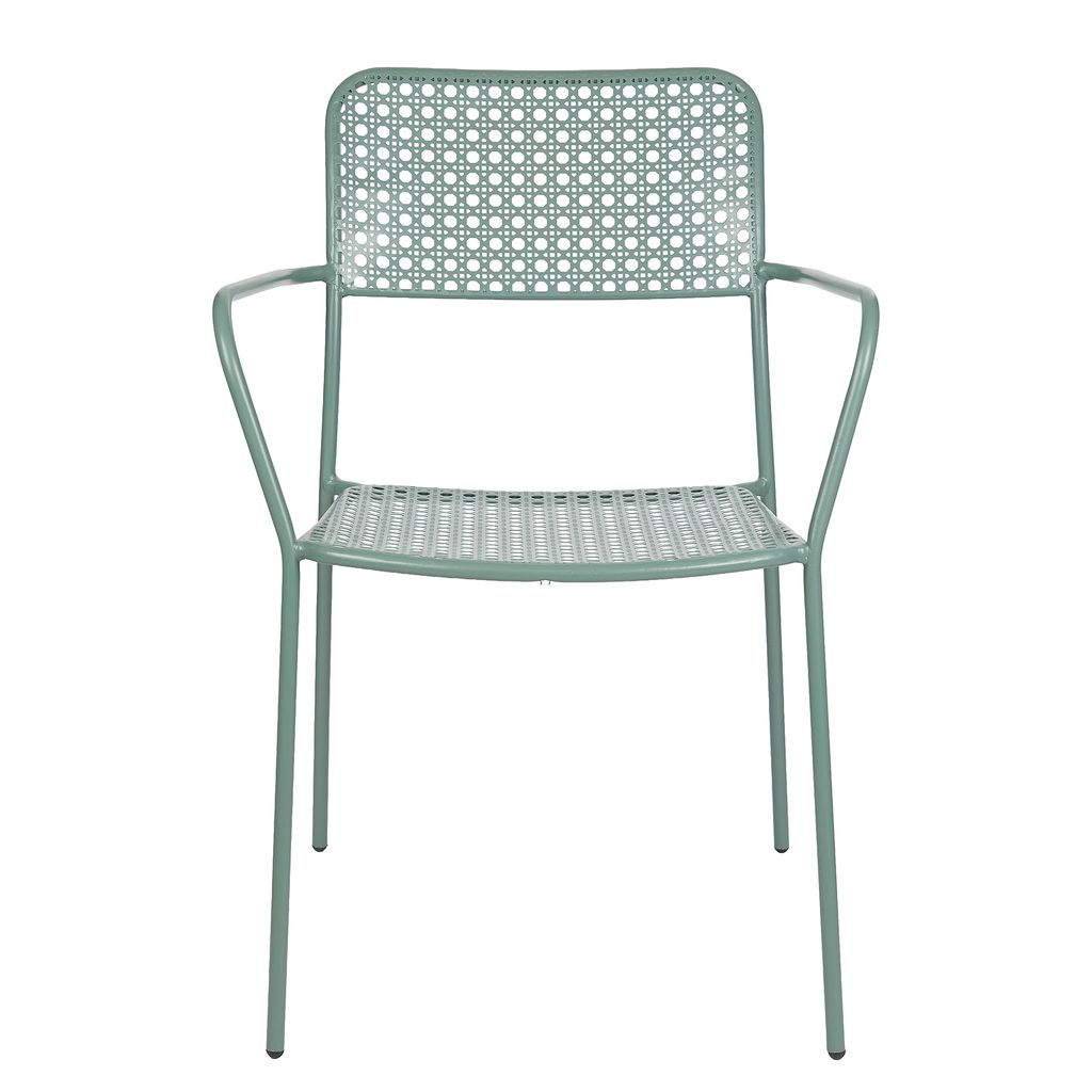 A New Twist kültéri szék azoknak szól, akik rajonganak a bécsi fonás eleganciájáért, és a kényelmet sem szeretnék feladni. A karfás, masszív acélból készült, egymásra rakható szék időtlen formavilága a klasszikus bécsi fonat megjelenését idézi, így egyszerre dekoratív és praktikus darabja a kertnek vagy a terasznak.