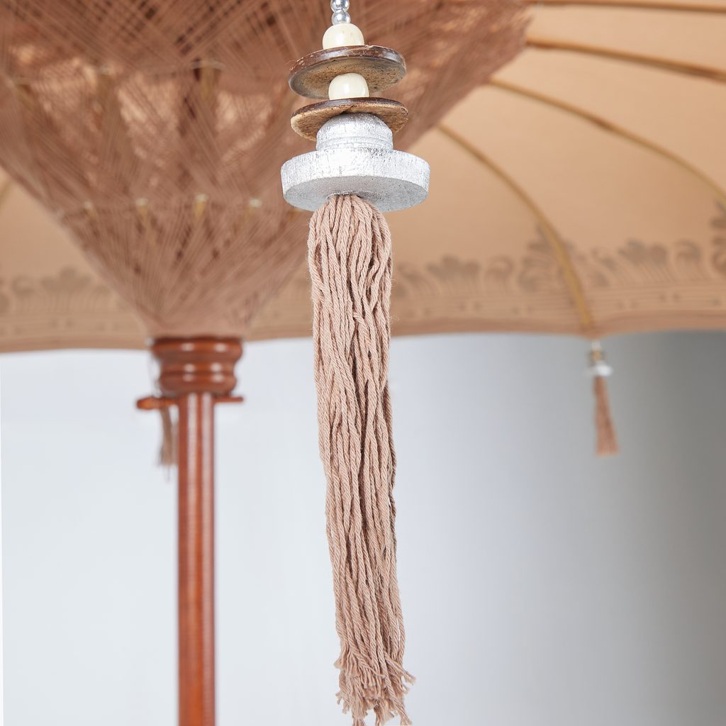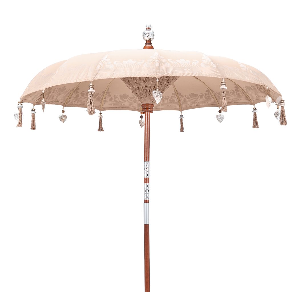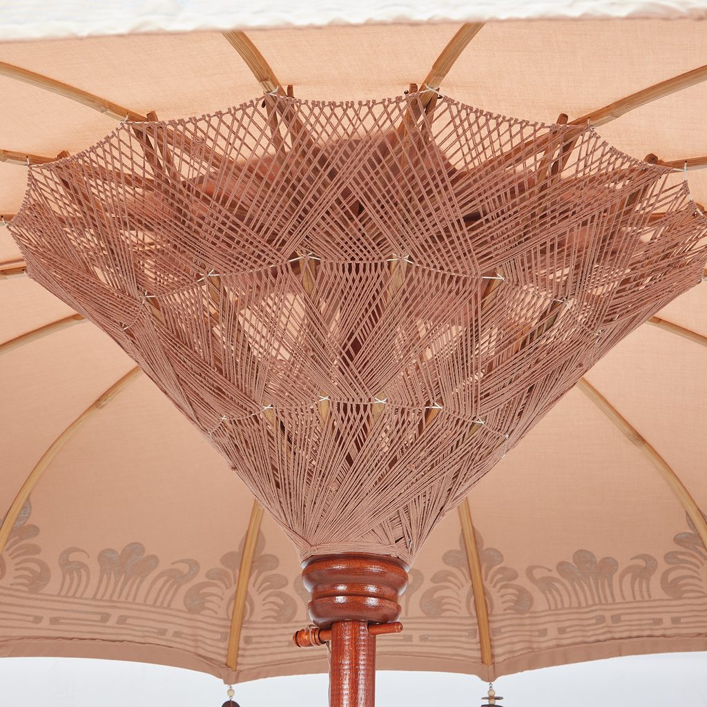 Az ORIENTAL LOUNGE napernyővel egy pillanat alatt megidézheted az „Ezeregy éjszaka” varázslatos hangulatát. Ez a különleges darab gazdagon díszített arany applikációkkal, bojtokkal és elegáns alumínium díszszívekkel, amelyek igazán egyedivé teszik. A prémium kialakítás miatt ez a napernyő nem alkalmas tartós kinti használatra vagy rossz időjárási körülmények közé — inkább alkalmi, dekoratív használatra ajánlott.