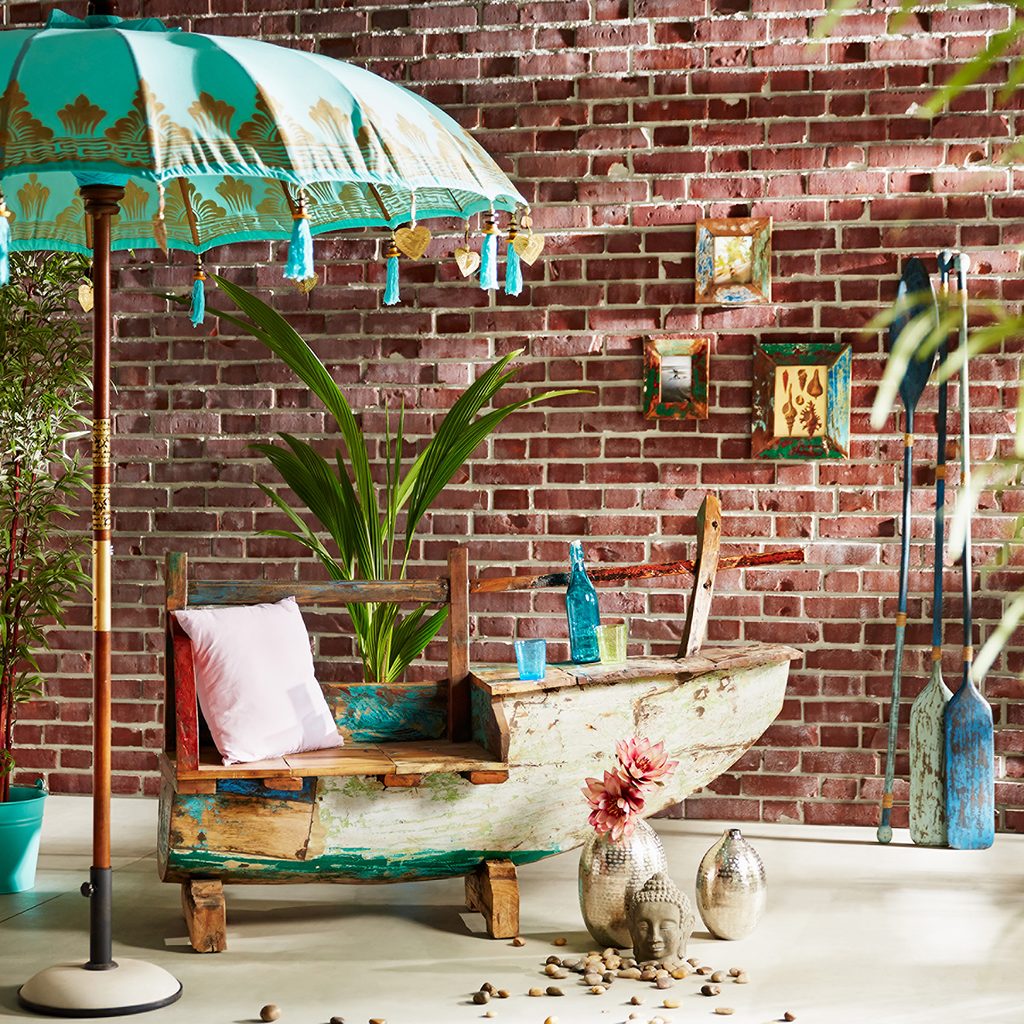 Az ORIENTAL LOUNGE napernyő, mintha csak az 1001 éjszaka meséiből kelt volna életre. A lenyűgöző arany részletekkel és díszítőelemekkel ellátott darab, a bojtokkal és szívecskékkel karöltve, alumíniumból és fehér fémből készültek. A jól kidolgozott apró részletek teszik a napernyőt lélegzetelállítóvá, például a belső juta bélés kézzel készített makramé. A szokatlan és értékes kivitelezésű napernyő nem alkalmas arra, hogy hosszabb ideig a szabadban legyen, és óvni kell a kedvezőtlen időjárástól is. Még egy változatban elérhető. Szükséged lenne egy megfelelő állványra is? Szerezd be a THE ROCK napernyő talpat.