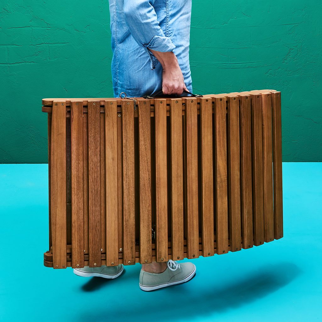 Az összecsukható, akácfából készült SUN WAVER napozóágy nem csak kényelmes, de a részerelt fogónak könnyedén magunkkal is vihetjük bárhová és élvezhetjük az ívelt formának és a puha matracnak köszönhető kényelmet.